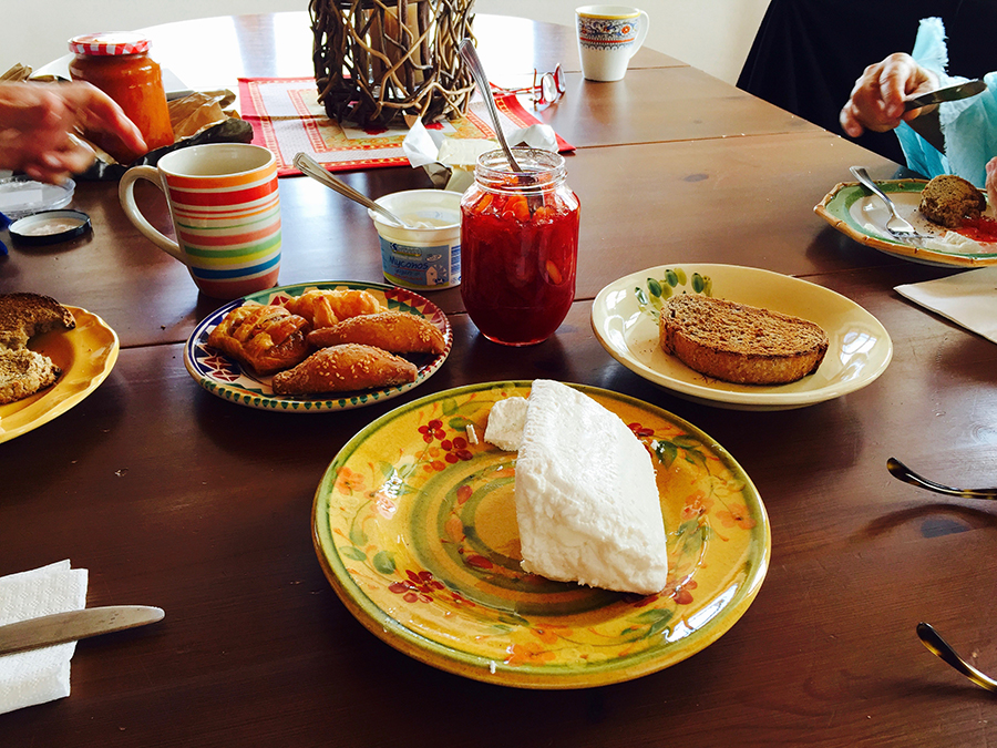 Market visit: (2-4 guests) Things to do in Mykonos for food lovers, join Angelina for a guided tour of the open-air fishmongers and farmers market to discover the local and regional produce of the island. From the stalls you will purchase fresh fish (if available) and shop for seasonal vegetables, fresh eggs and fruits for your brunch. Visit the local bakery for some fresh bread and stop at a small supermarket along the way to learn about and purchase local cheeses (tyrovolia and kopanisti) for the small cheese pies that you will make. Your Mykonos market tour will last about 30 minutes after which you walk a few minutes, basked in hand to Angelina's home to begin your cooking class. Please note that the open-air farmers market ends at noon so it is recommended that you start your market tour at 10am.