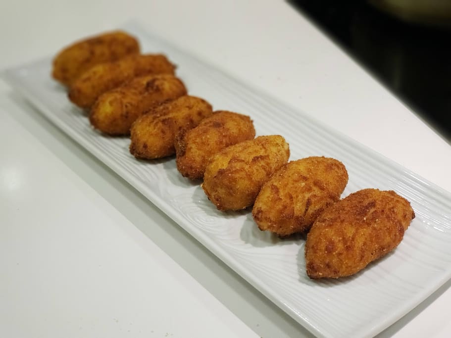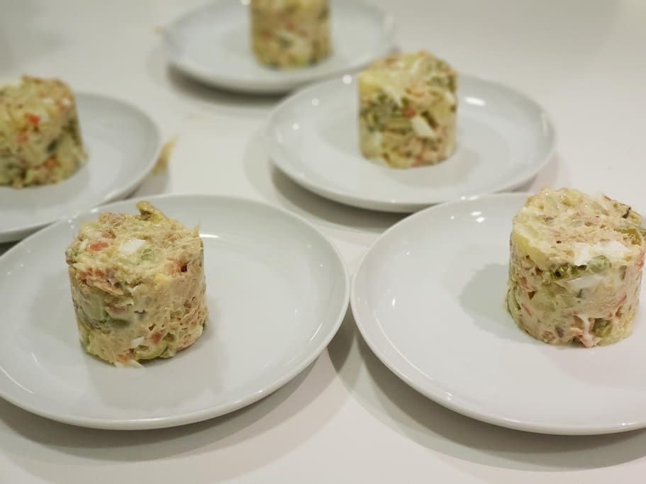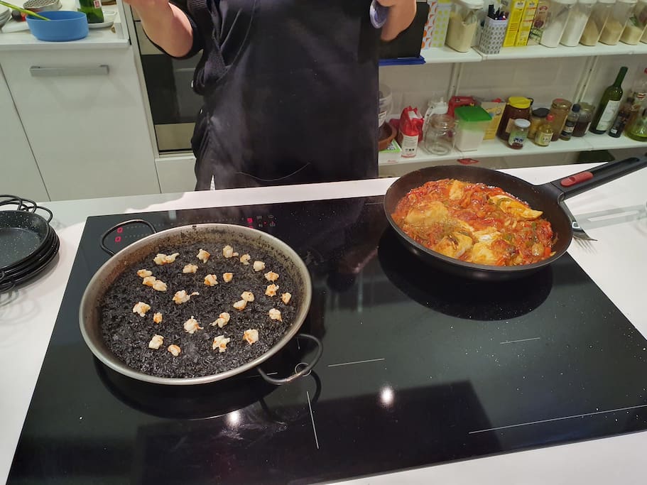Cooking experience: (1-10 guests) Discover the authentic taste of Spain in the heart of Madrid! Immerse yourself in an exclusive, unique and super fun tapas and paella, small-group cooking class guided by a professional chef passionate about Spanish culture and cuisine, Lola. In your shared Madrid cooking class you will learn to cook ham croquettes, black rice (paella), Russian salad, and "ajoarriero style" cod in a cozy gastronomic space, conveniently located just 2 minutes from Pacífico metro station, line 1. The cooking studio has a large, open and modern kitchen with enough space for everyone to cook at the same time and participate actively. In addition to cooking, you will taste each of your creations while enjoying some good wines, all drinks are included! No prior cooking knowledge is necessary, just bring a lot of enthusiasm, and an appetite to learn! So, if you love cooking and want to experience Spanish gastronomy in Madrid, this cooking class is perfect for you.