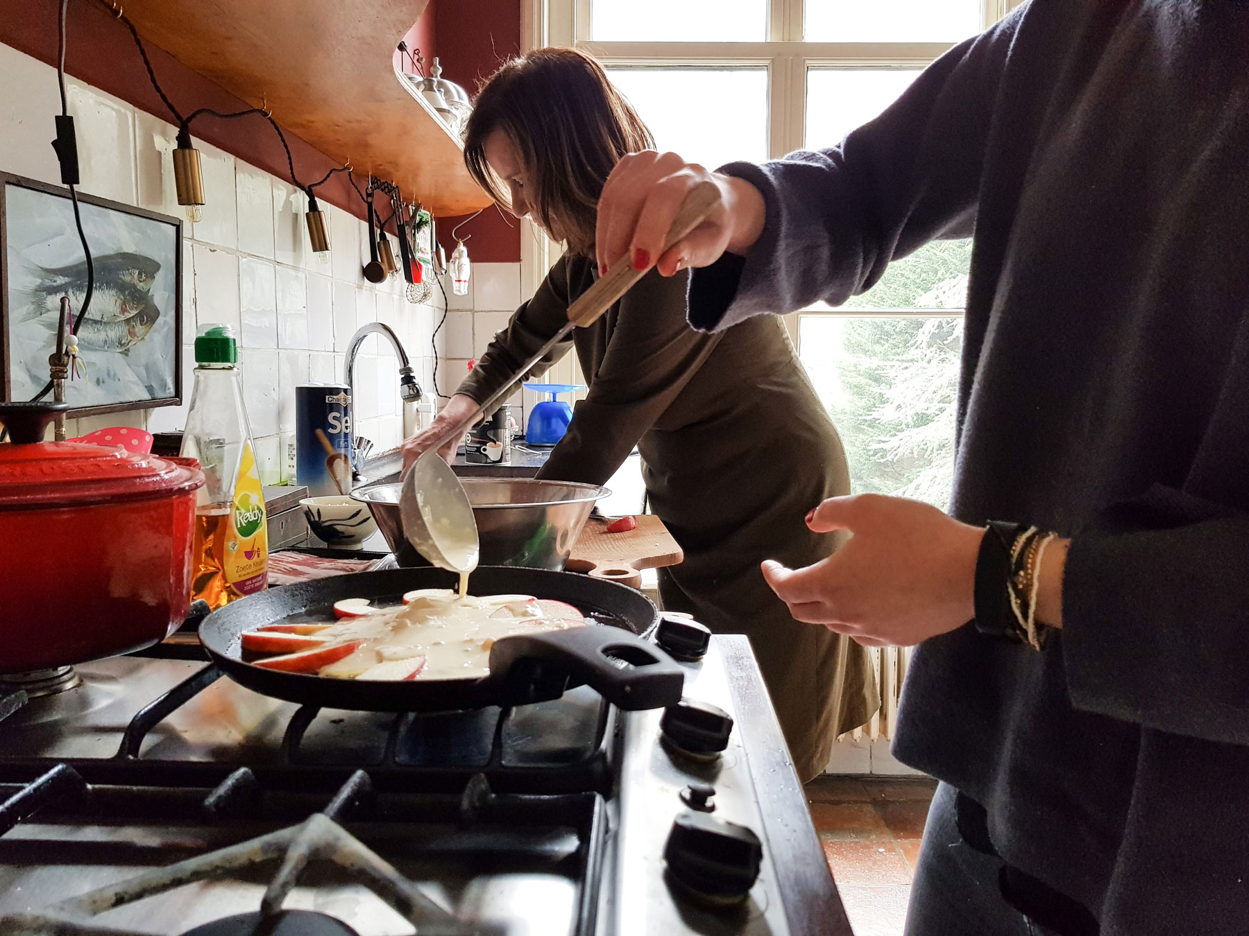 After the food and market tour, head to Fusina’s charming home for your Dutch pancake-making session. Learn to prepare both sweet and savory styles - traditionally with apples, and with bacon from southern Dutch pigs, cured and smoked by a local butcher. You’ll cook and enjoy the Dutch pancakes (pannenkoeken) in her cozy kitchen, sipping a glass of Dutch white wine served in vintage crystal glasses passed down from her grandmother. A special toast with Fusina marks the end of this joyful and authentic Amsterdam food experience.