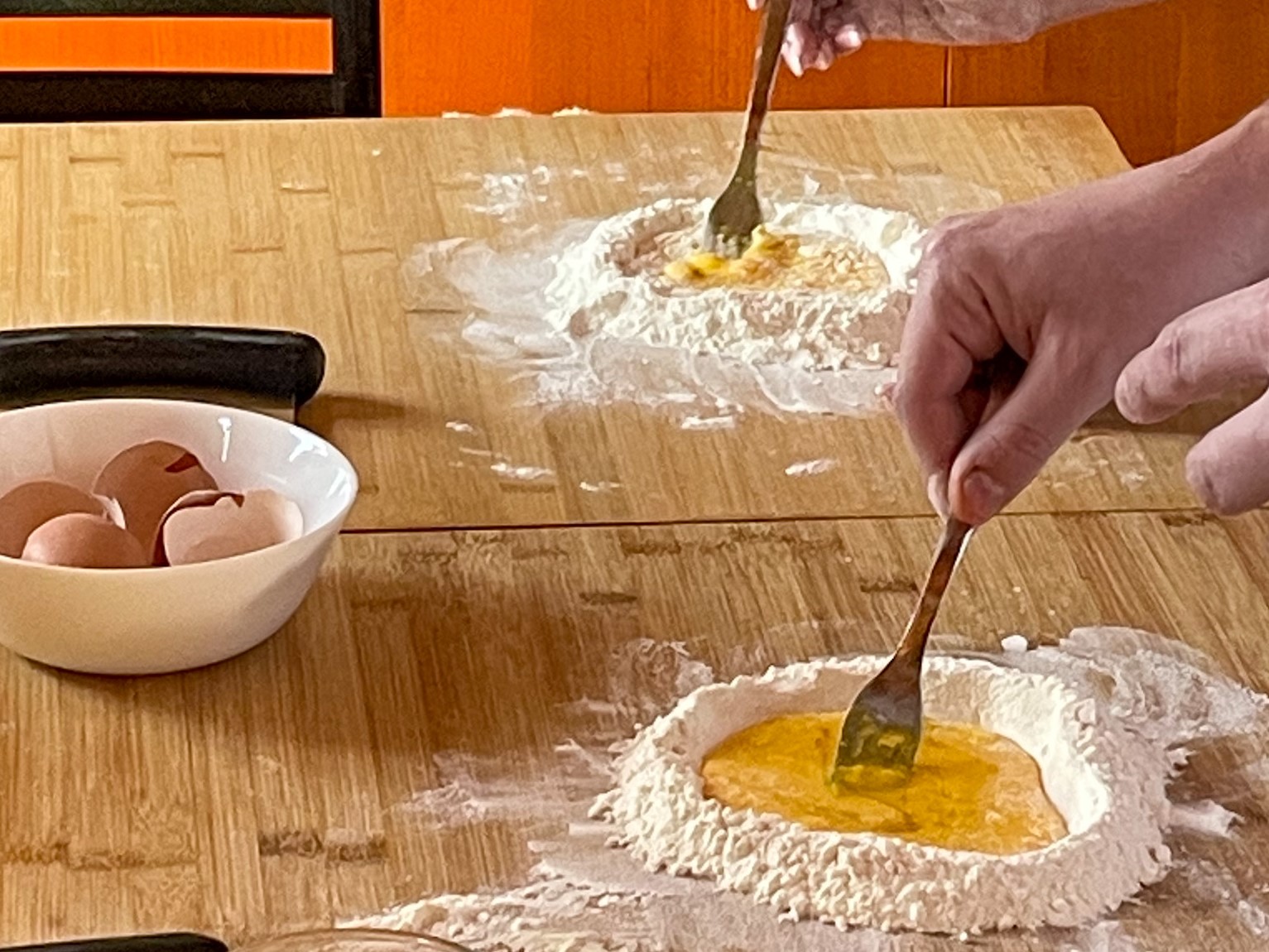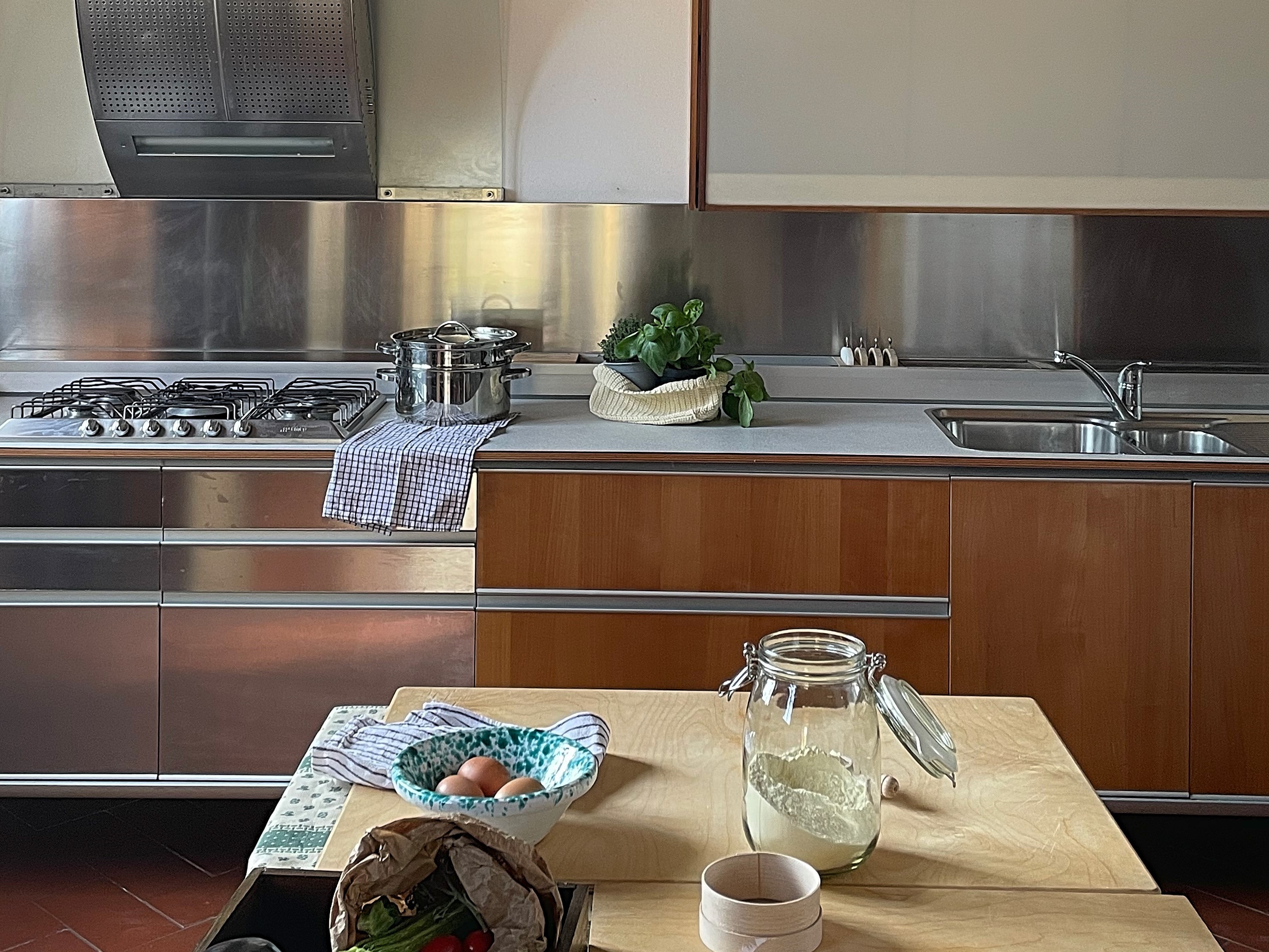 Antonella’s kitchen is the kitchen of a professional chef. She has every single, specialized tool that you could imagine and a drawer with knives that would make any Master Chef jealous! During your Florence cooking class you will make a dessert, fresh pasta and main dish all from scratch. When you arrive, the kitchen table will already be set with the ingredients for the first recipe, a dessert. As you begin to put everything together according to Antonella's verbal instructions, she will share with you intriguing tidbits about cooking and baking, such as the difference between types of flours, and which flours are best for making fresh pasta versus cakes. As your dessert cooks, you will start to knead the dough for the fresh pasta. While the dough is left to rest, you will make your main dish, and then go back to roll out the pasta. Throughout it all enjoy Antonella and her husband's teaching and stories while they help to clean and fetch ingredients for your class. A memorable culinary experience in Florence!