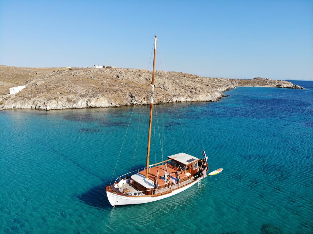 Total price is the same for 10 people or fewer. Final destination varies due to meltemi, the north winds of the Aegean but the captain and the crew will ensure that you sail in peace and tranquility enjoying a glass of cool Greek wine, as you land on a southern beach of Mykonos or on Delos island. Please share your passport details ahead of time so your host can provide them to the boat captain before you embark.