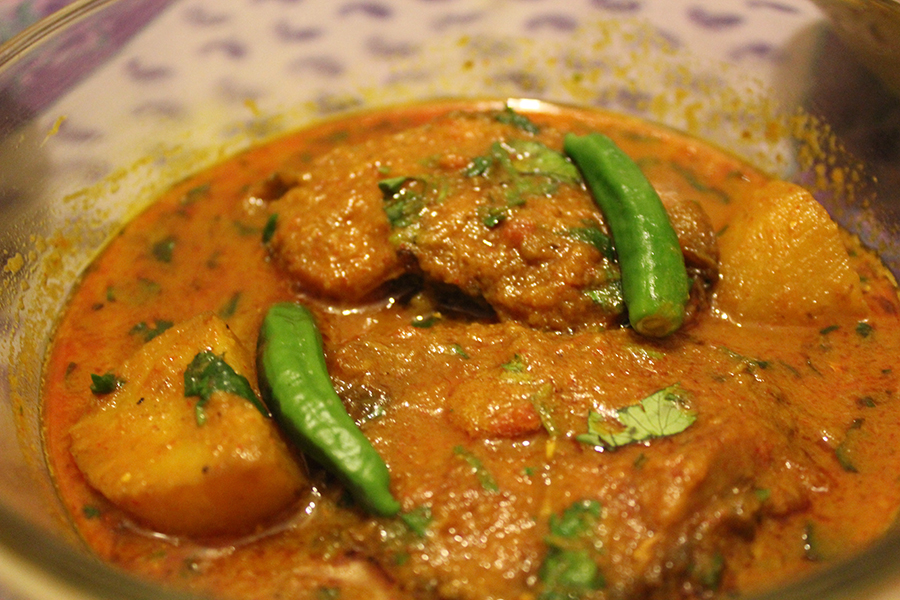 After your welcome drink of ampura sherbet (a refreshing raw mango drink) or, in the winter, apple juice with a hint of ginger, you will share a traditional Bengali meal eaten in courses with Bibi and her family. Dishes may include rice with a shaag bhaja (fried greens) or shukto (mixed bitter vegetables), dal, and vegetable bhaja (fried eggplant, crisp fried potato sticks), Bengali style vegetables, fish curry or fry, chicken or prawns cooked in a traditional way and papad and chutney. To finish, a dessert of mishti doi (sweetened yoghurt) or payesh (rice pudding with jaggery made from nectar from the date palm tree).
