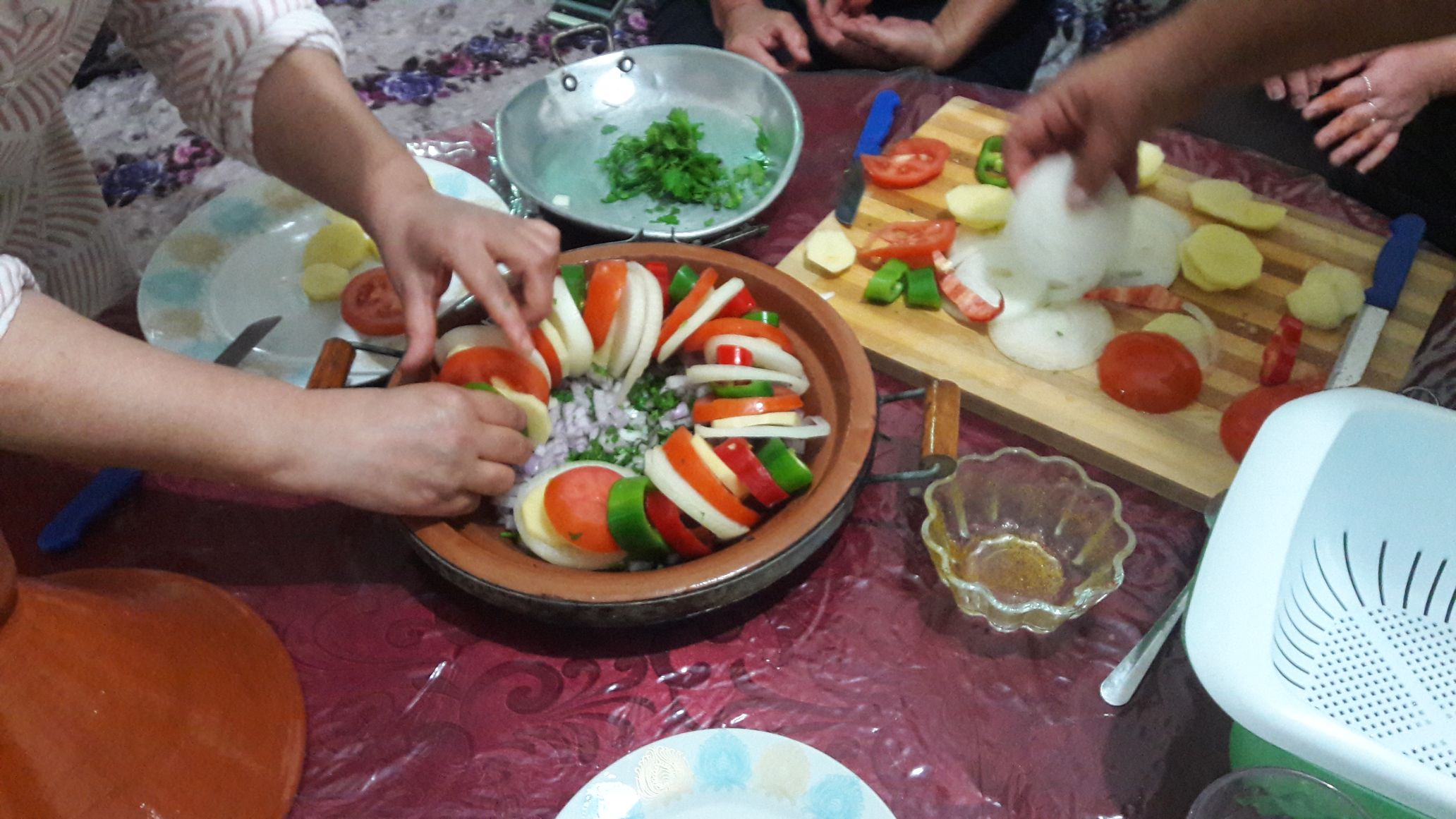 Cooking experience: (1-5 guests) In your traditional Moroccan cooking class in Casablanca, join Fouzia in her home kitchen to learn to cook a Moroccan meal. As her kitchen is small your class will be a mix of a demonstration and a hands-on experience. In 1.5 hours you will learn to make chicken and lamb tagine. All the prep work will be done in the living room, where you will help chop the vegetables and herbs. Then you will move to the kitchen for the final cooking, where you will watch as Fouzia cooks your home cooked, traditional Moroccan meal. As Fouzia is not fluent in English, Mohamed will be present to help translate.