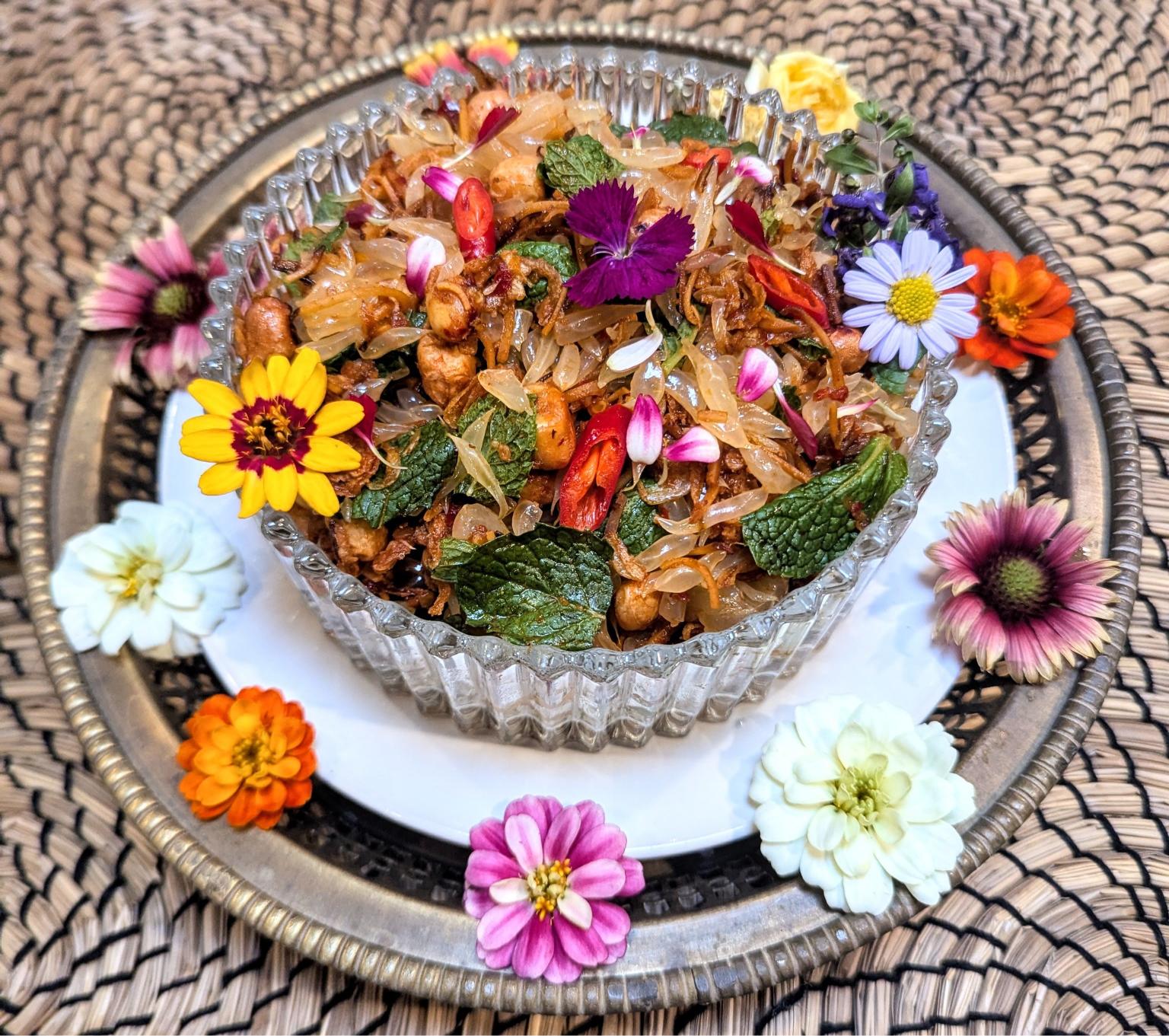 In-home meal: (1-5 guests) Join Young in his dining room, which offers bright views of the garden, for a home-cooked Thai meal in Nonthaburi. You will enjoy 3 dishes such as royal citrus salad (yum som o), pineapple curry or northern Thai curry noodle soup (khao soi) and chicken salad (larb gai) or shrimp in sweet coconut chili sauce (yum tua plu). The menu is based on seasonally available ingredients. If you have any food allergies or preferences, please let Young know at the time of booking. The majority of dishes are served family-style along with jasmine rice and meant to be shared. Each dish will be beautifully presented with local herbs and flowers, so don’t forget to take pictures before you dig in!