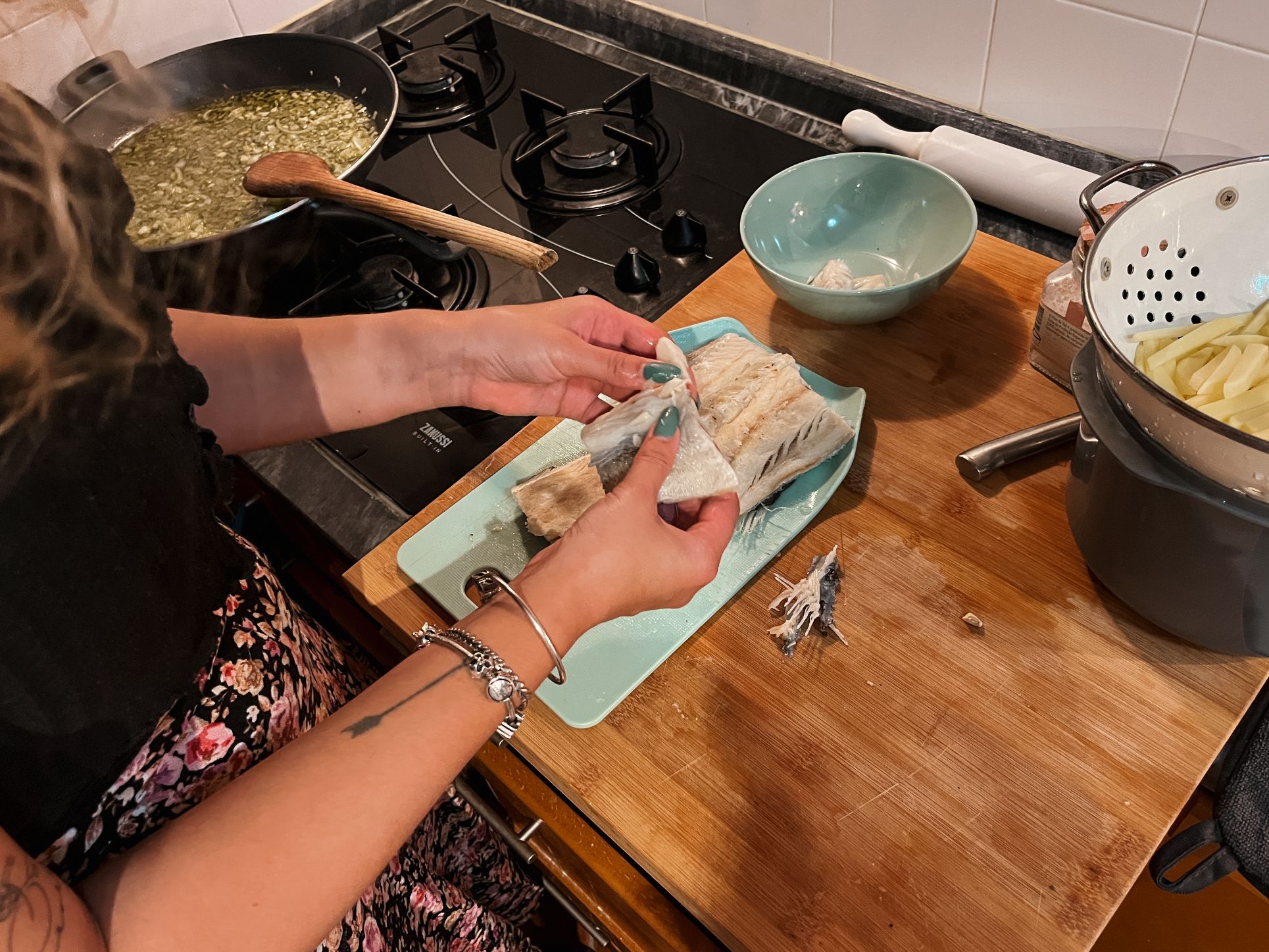 Prefer a savory meal? Opt for the Traditional Portuguese Menu, and learn to cook a comforting home-style dish such as bacalhau à brás (salt cod with eggs, onion, and matchstick potatoes) or arroz de polvo (octopus rice), guided step-by-step by your hosts. Please let them know your menu preference when booking your Sintra cooking class.