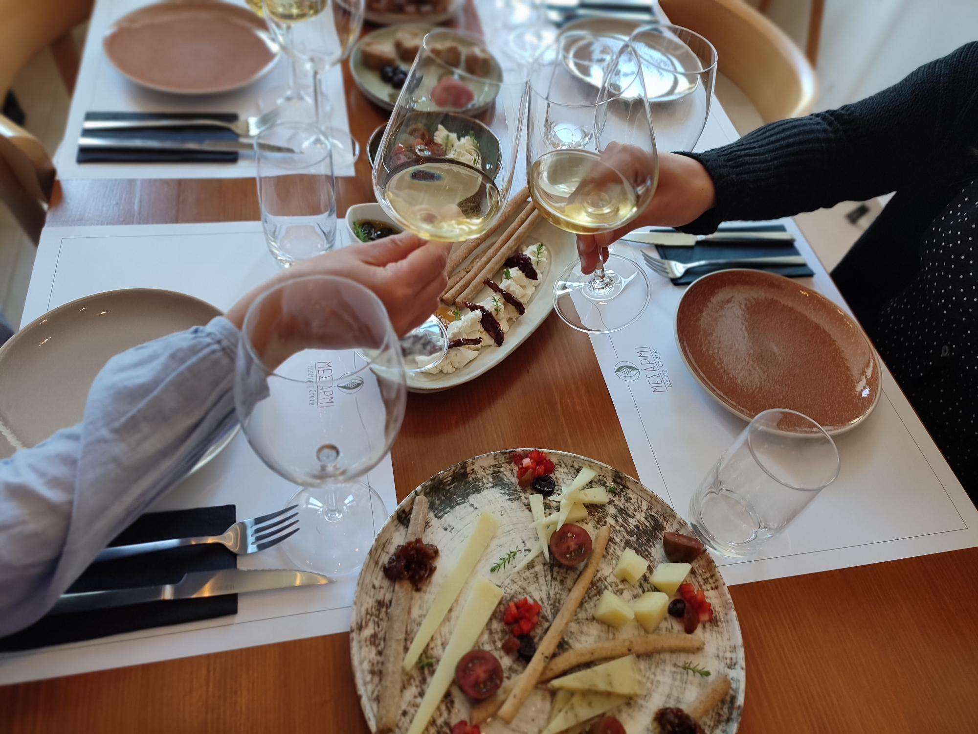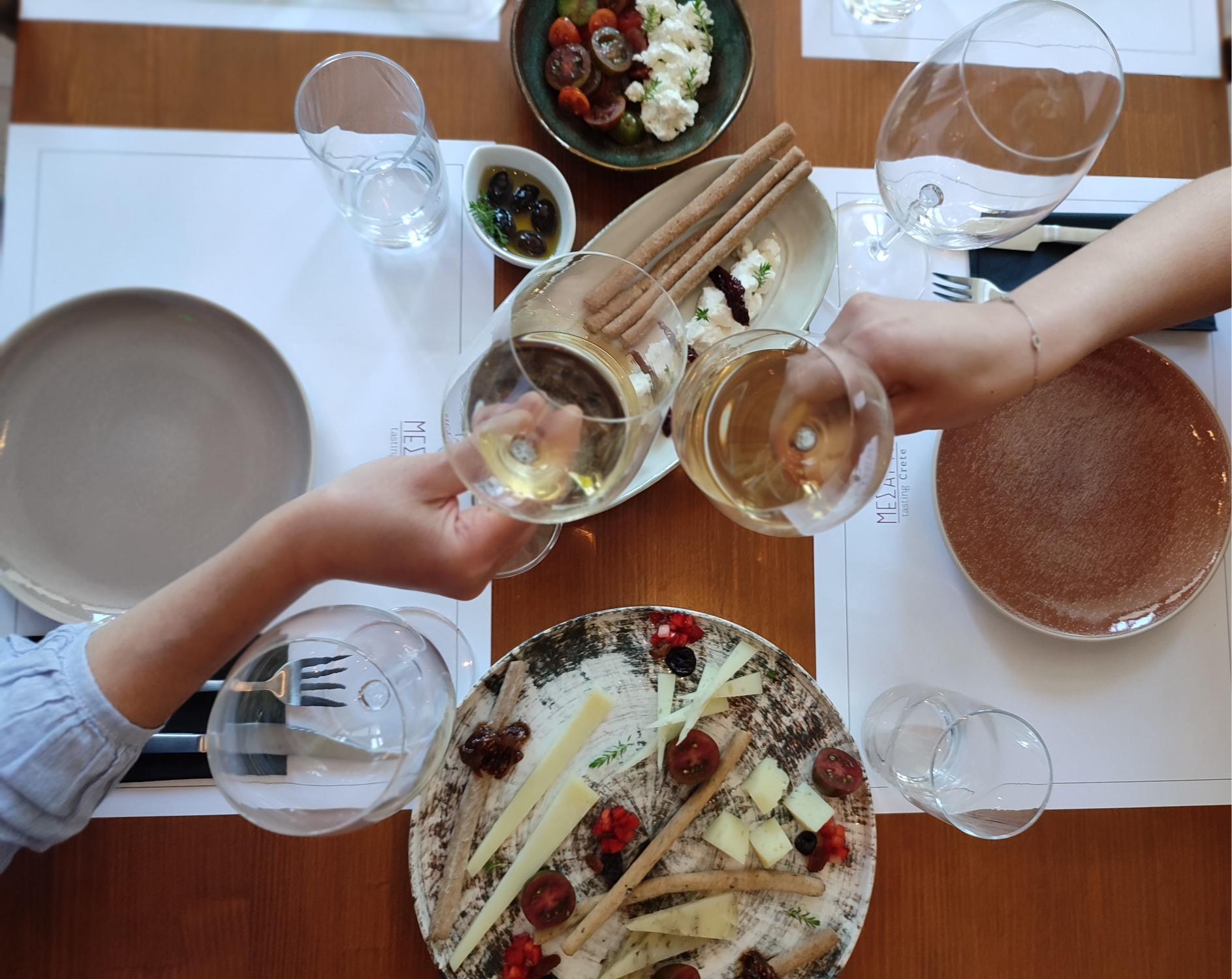 In your 3-hour Cretan wine tour and tasting experience, you will enjoy a visit to the family vineyard, a tasting of some of the finest Cretan wines, that will be paired with local ingredients like cheese, herbs, honey and ham. Start your experience at the tasting room with a short video and power point presentation to understand how the Cretan landscape and its grapes affect the wine production. Then drive towards the family vineyard, the field is 5km away from the tasting room and it’s recommended to have a car or van. In the vineyard you will get an opportunity to engage in some of the vineyard work depending on the season – it can be pruning if it’s winter, taking off leaves or branches, or tying branches on the wires if it’s spring or harvesting some grapes if it’s summer. After your short walk in the vineyard, it’s time for the wine tasting! It can either be done in the tasting room or in the vineyard as a picnic under the trees (if you prefer the latter you need to inform Stella in advance, and as it is a picnic you will sit on the ground).