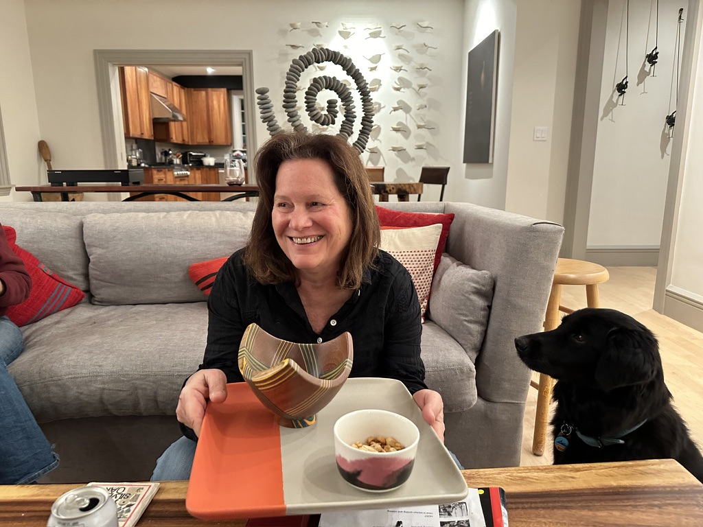 In-home meal: (1-8 guests) Join Marla and Max in their modern, artistic home to share a vegan meal. You will also meet Becca Sue (a rescue from Natchez, Mississippi), their beautiful dog who loves humans! Marla is a passionate home cook who specializes in vegan world cuisine. She loves cooking plant based meals and is so happy to share it with like minded travelers. In 2022, Marla and Max took a road trip across the US, so you can expect to try a few dishes inspired from their travels. Marla loves to cook with ingredients that are fresh and in season. So your menu will vary depending on the season, but a few dishes you can expect to try are pesto pizza (typical toppings include spinach, potatoes and mushrooms), salad or homemade cornbread, mushroom stroganoff and chili sin carne or glazed tofu. End your meal with some homemade ice cream, berries and dark chocolate. If you're looking for a wholesome vegan meal in Boston, Marla's homemade vegan meal will not disappoint!
