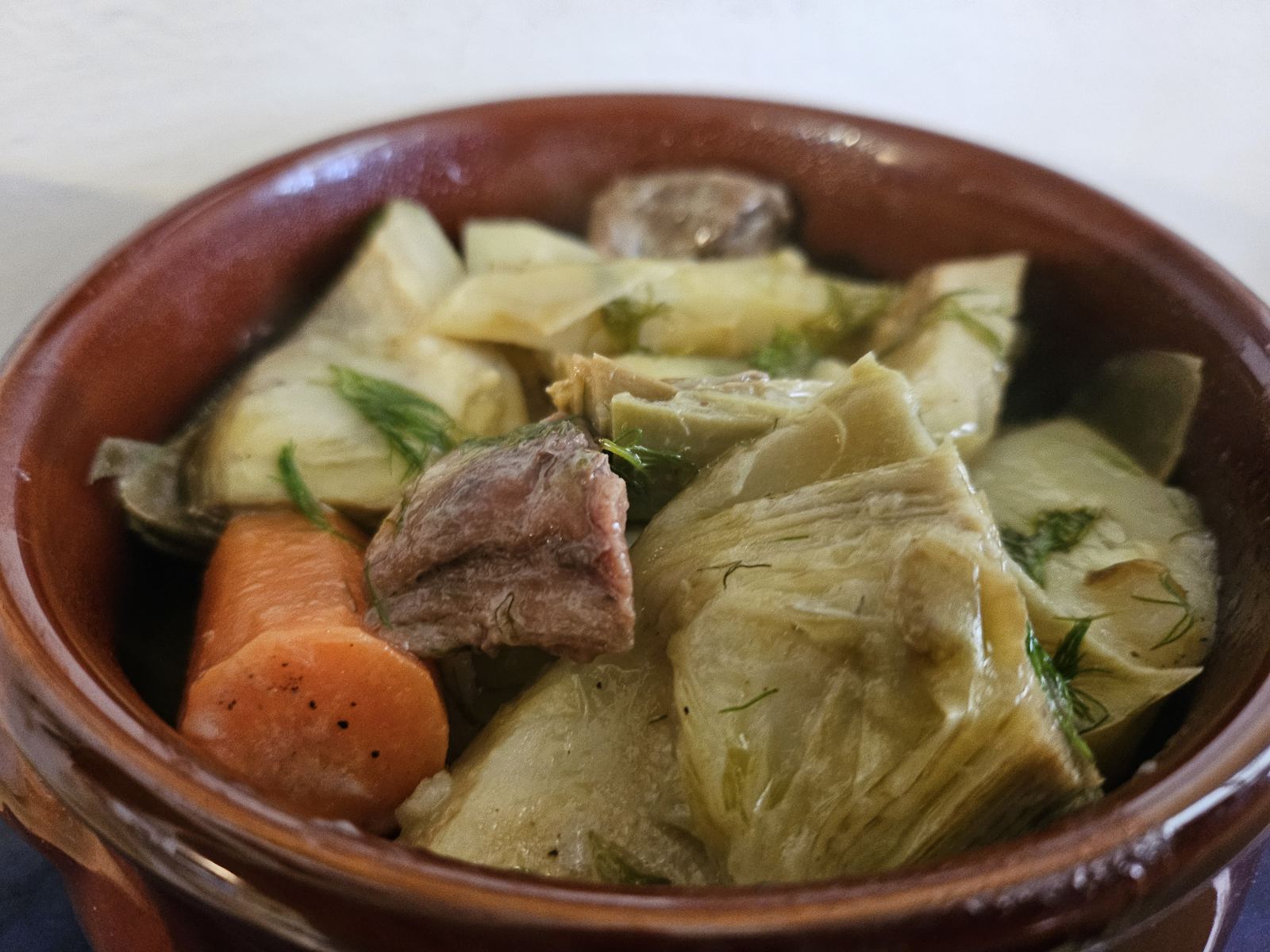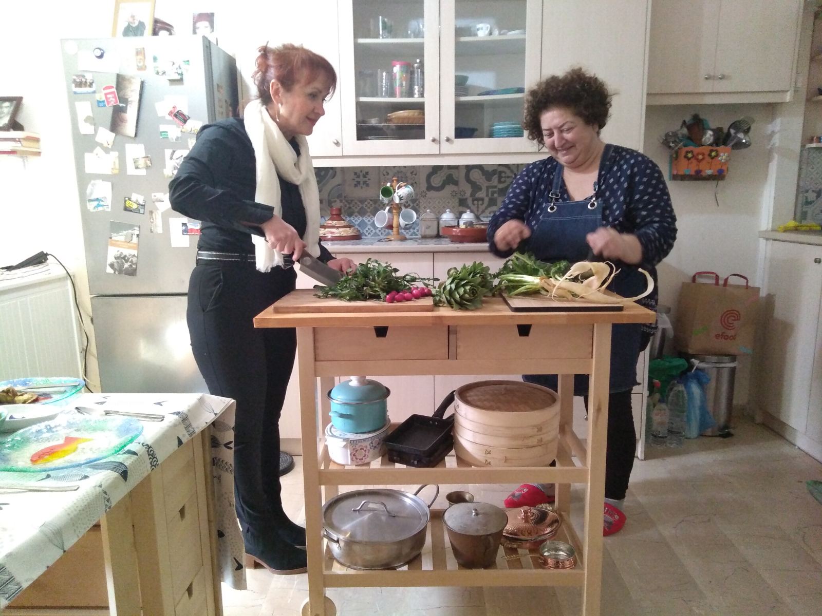 Greek food experience in Crete, join Ozlem for a hands-on cooking class in her home kitchen in Roustika, a charming village in central Rethymno, Crete, with rich Venetian history and stunning architecture. In your two hour Cretan cooking class learn to make artichokes with peas and meat or fish or stuffed vegetables or Cretan chicken pie and a wild green salad. Or you can learn to make handmade pitas with a filling of your choice (greens or Cretan cheese or meat). Please let Ozlem know your preference in advance. She will also share stories behind food that you're cooking and tip and tricks that she learned from her grandmother. After cooking, sit down together to share the meal you helped prepare.