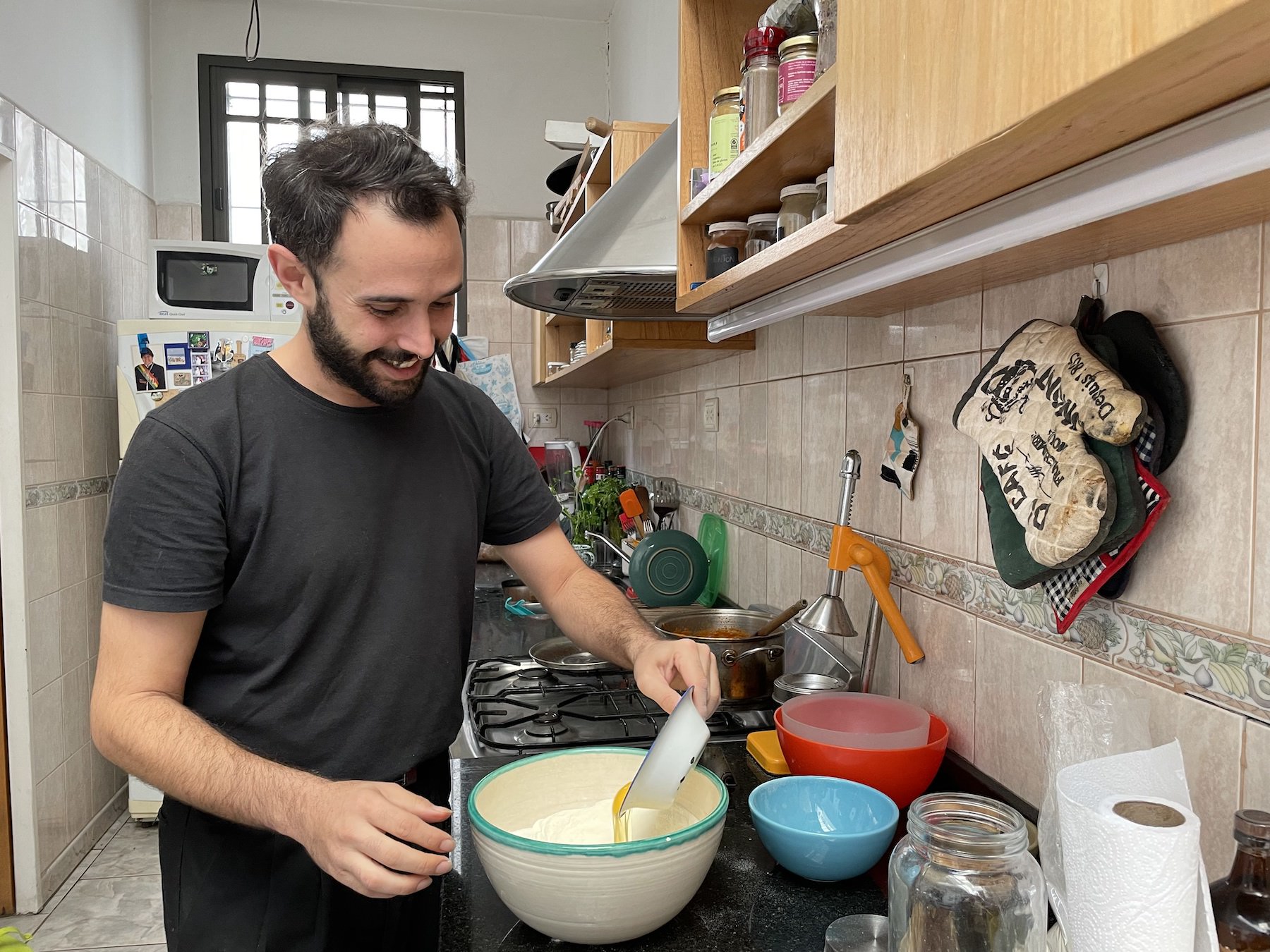Nico is a musician, composer, and educator with a passion for food and sharing Argentine culinary traditions. He comes from a family of Italian immigrants and learned to cook pasta with his mother and grandmother, preparing Sunday lunches that are as much about family as they are about food. His favorite dish is ravioli, and with Nico, you’ll learn both how to make pasta and its cultural significance—like why gnocchi is eaten on the 29th of each month. Nico lives in a simple apartment in Villa Ortuzar with his girlfriend Pilar, who may join the class, and is dedicated to creating a memorable, authentic Argentine food experience.