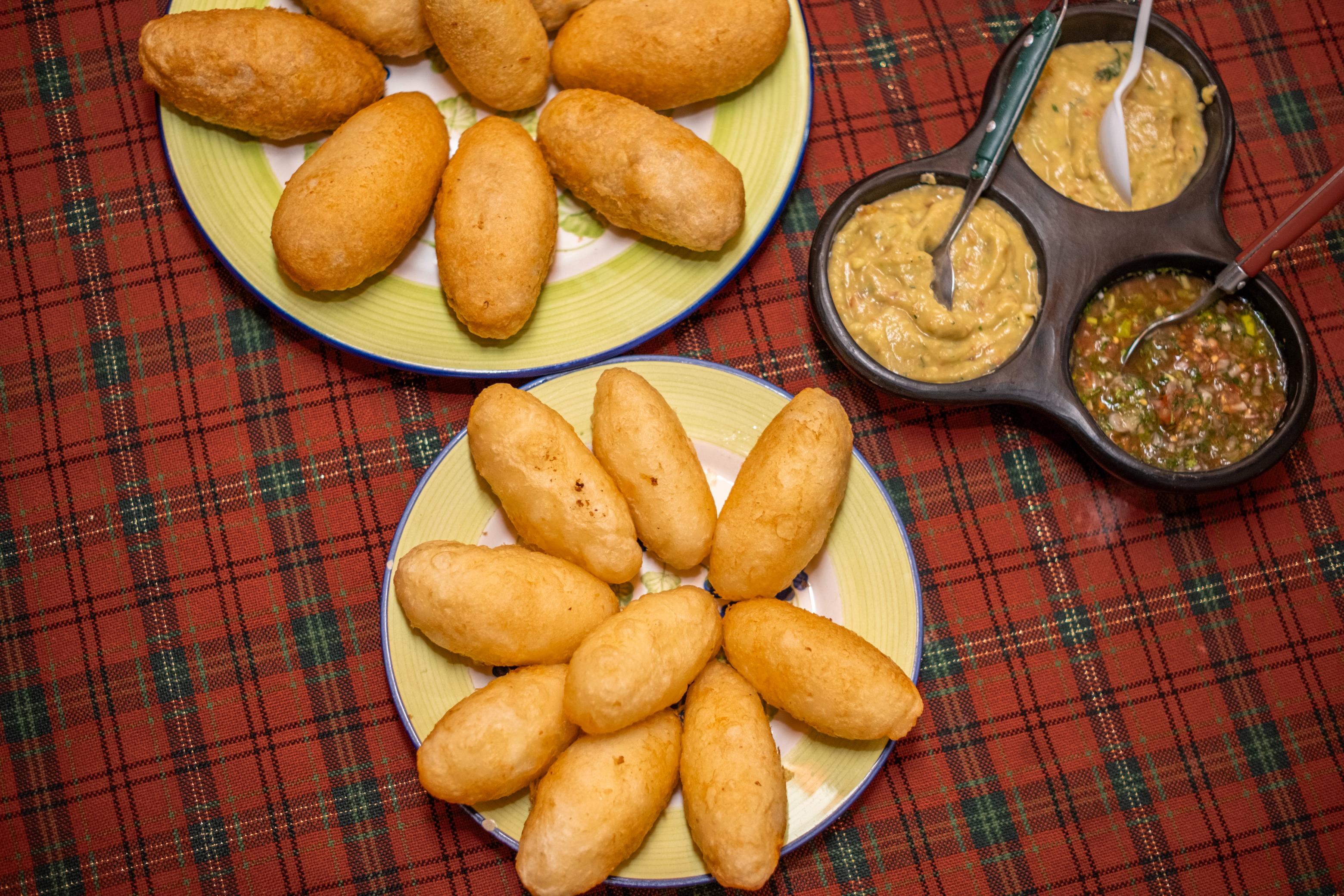 Cooking experience: (1-5 guests) During your 2-hour Colombian cooking class in Bogota, learn to make three authentic Colombian dishes from scratch. This is a hands-on cooking class where you will master traditional cooking techniques and transform fresh ingredients into delightful preparations. Dona will guide you every step of the way, while her translator shares stories and cultural insights that bring the history behind each dish to life. The three dishes that you will learn to cook in your Bogota cooking class are carimañola (fried cassava pockets bursting with a melty coastal Colombian cheese), pastel de yuca (a baked cassava dish with a hearty ground beef filling) and ají de aguacate (Colombia's spicy avocado dip infused with vibrant herbs, a touch of spice, and a unique Colombian flavor). After cooking, sit down to share the meal you helped prepare.
