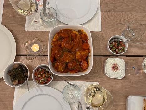 In-home meal: (1-7 guests) Welcome to a Persian culinary experience in Stockholm with Mahnaz! Passionate about sharing the flavors of traditional Persian cuisine, she invites you to join her for an intimate, in-home meal experience, where she will share cherished family recipes passed down by her mother. You will have the chance to savor a homemade Persian feast in Mahnaz's welcoming, cozy home. Come, join her for a delightful evening where heart-warming hospitality meets the aromatic delights of Persian cuisine! A few dishes you might try at Mahnaz’s table are fesenjan, a delectable stew featuring ground walnuts, pomegranate paste, and poultry - creating a sweet and sour symphony, which is served with a Persian-style rice dish, complete with the coveted tahdig—a crispy layer forming at the bottom of the pot, or zereshk polo ba morgh, a barberry rice with chicken, often accompanied by pistachios and almonds, kashk-e-bademjan, a creamy eggplant dip paired with traditional flatbread and to complete the feast, a refreshing shirazi salad with Persian cucumber, tomato, finely diced and mixed with fresh herbs like mint and parsley, dressed with olive oil, lime or lemon juice. For dessert, you might delight in the taste of traditional Persian ice cream, featuring flavors of saffron, pistachio, and rose water—a perfect ending to your culinary journey at Mahnaz’s table. As the culinary journey unfolds, you'll discover the unique and flavorful essence of Persian gastronomy.