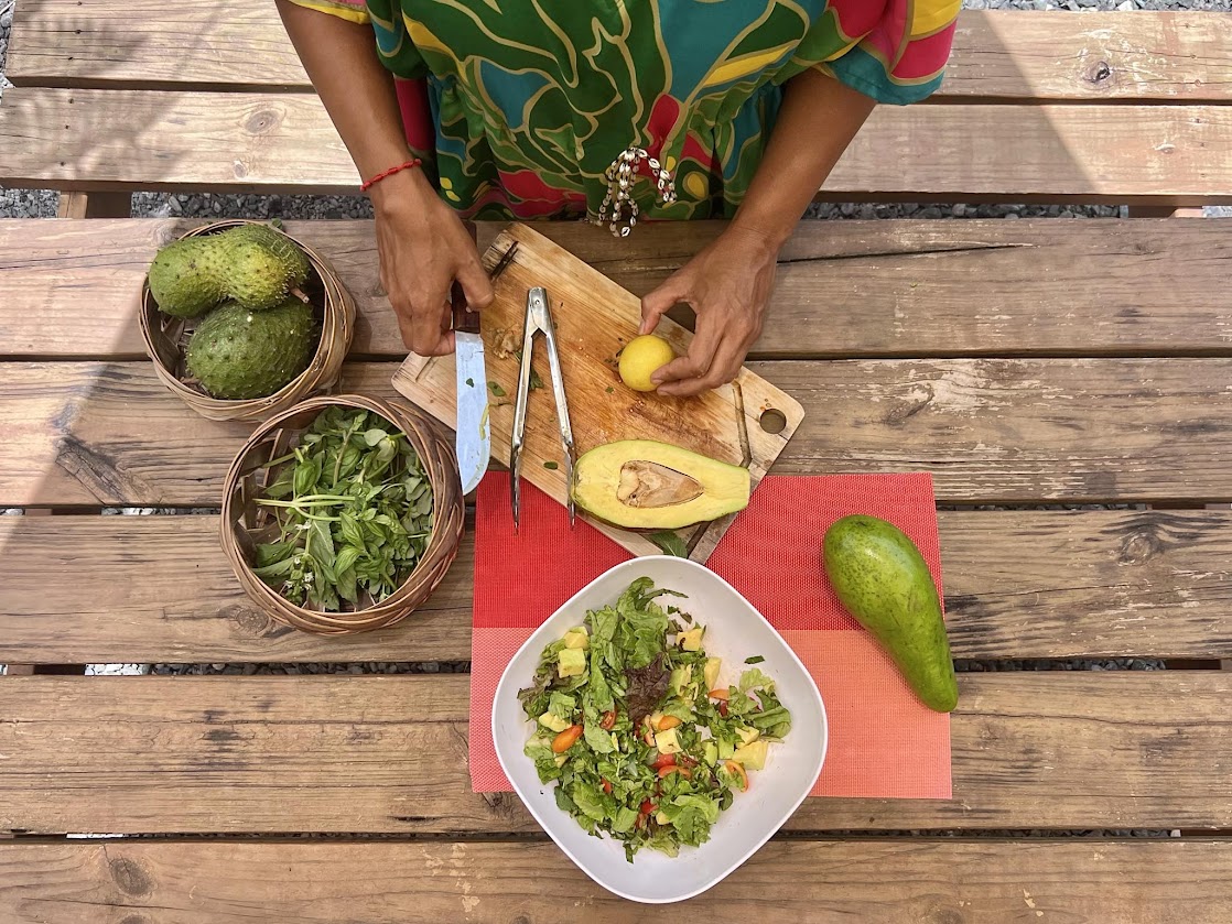 Once you learn to identify, collect and taste the native medicinal plants of Puerto Rico, Susimar will teach you how to cook with it. In your 2-hour hands-on Puerto Rican cooking class learn to make a beverage and two dishes from scratch. Learn to cook traditional Puerto Rican dishes using family recipes and local ingredients with healing properties. You will join Susimar in her outdoor kitchen and help her make a beverage with seasonal fruit, a salad with herbs that you will hand pick from the farm, and a comforting healing soup with a home-made dressing. Please note the menu is seasonal and changes depending on the availability of herbs and plants. After you cook, sit down at the table on the outside porch to enjoy the delicious meal you helped prepare.