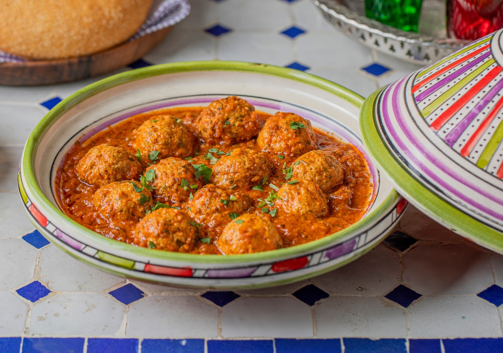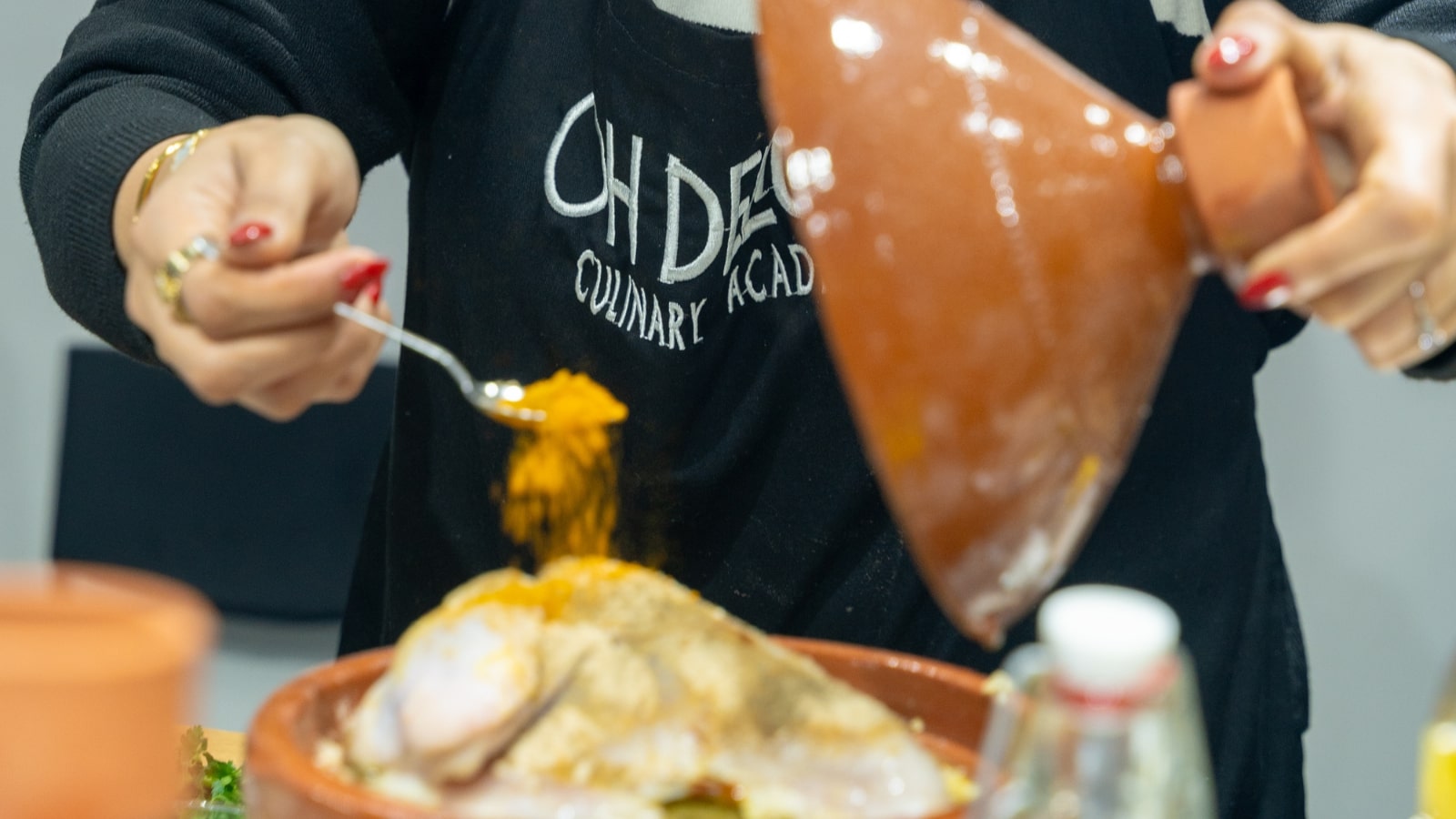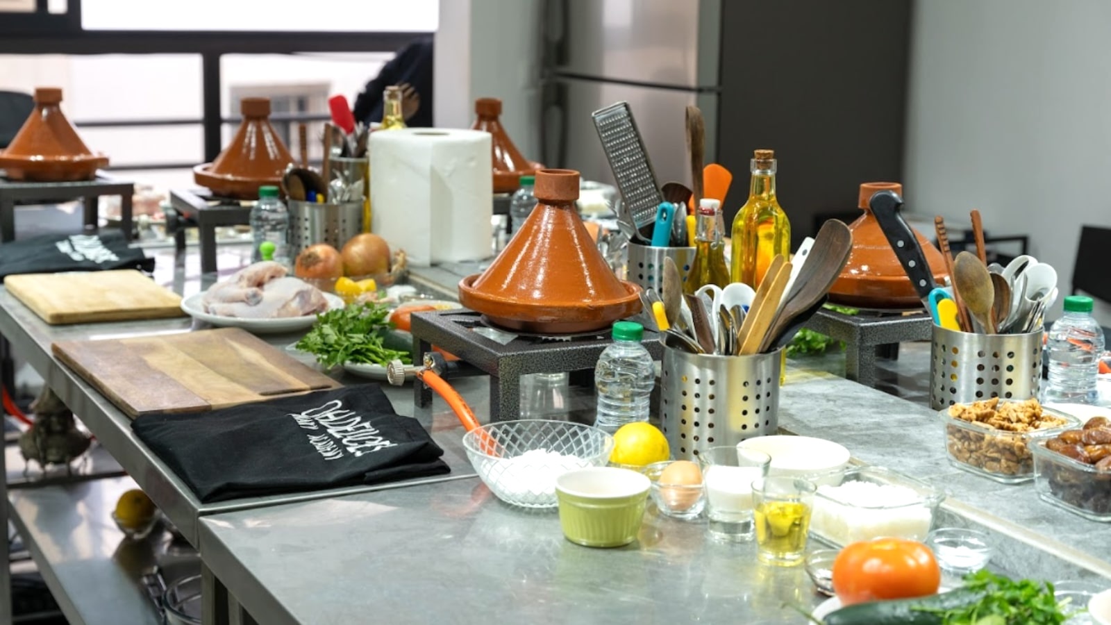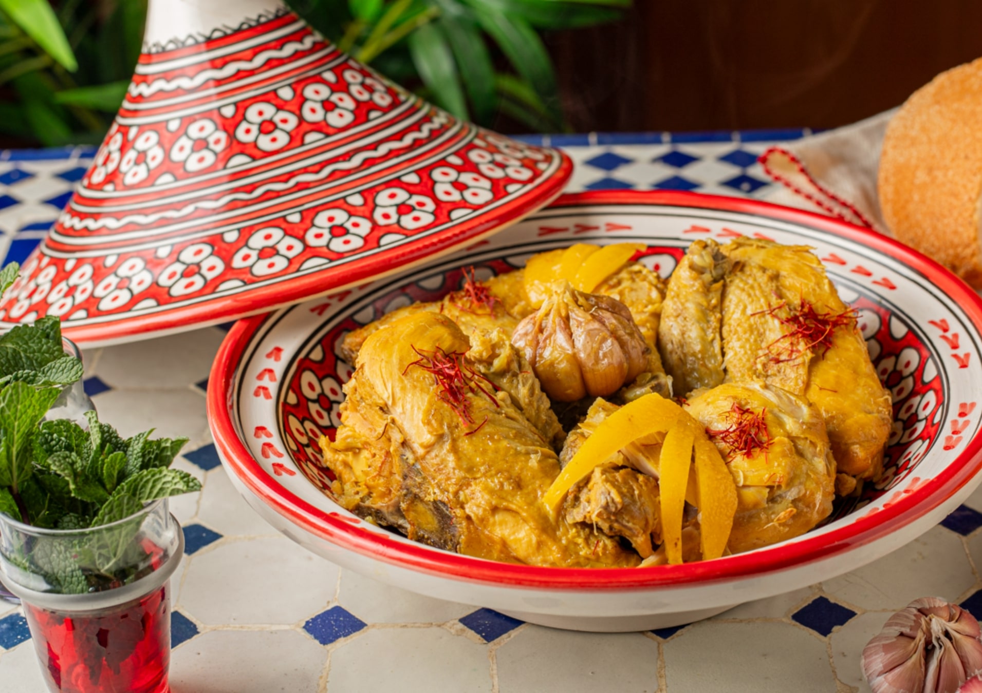 • Menu 1: Zaalouk (roasted eggplant and tomato salad), Chicken Tagine with preserved lemons and olives, and Jawhara (crispy warqa pastry with creamy milk pudding and orange blossom water, topped with nuts)