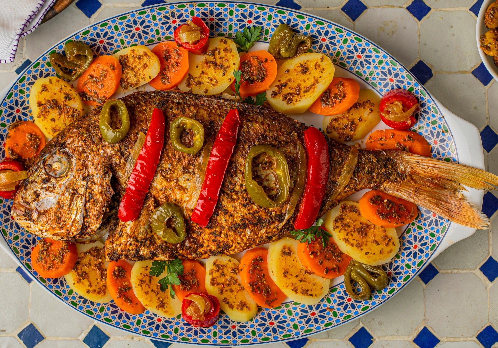 • Menu 3: Moroccan Carrot and Orange Salad with a hint of cinnamon, Vegetarian Tagine with seasonal vegetables, Jawhara