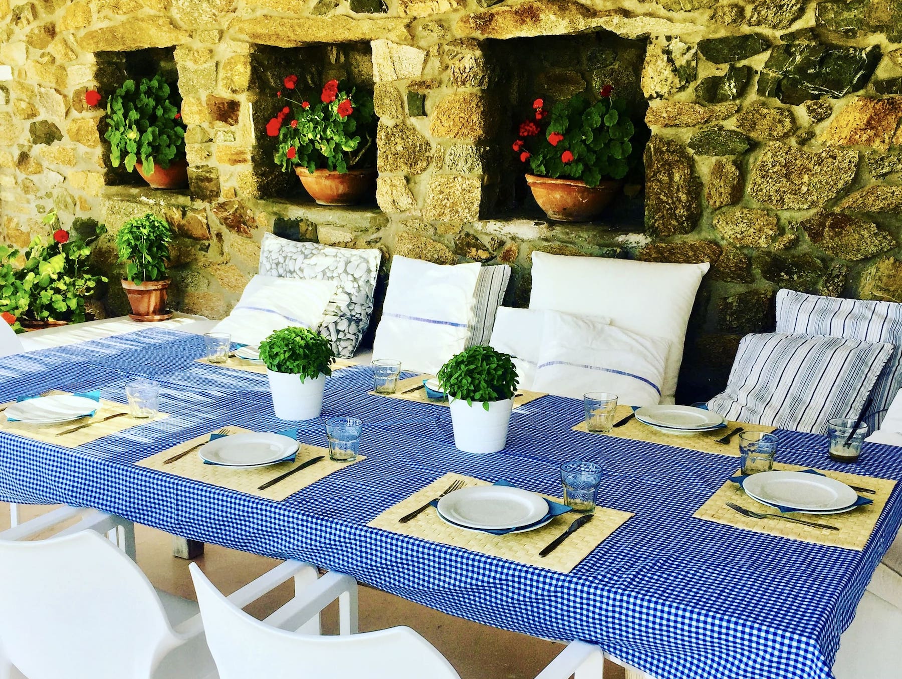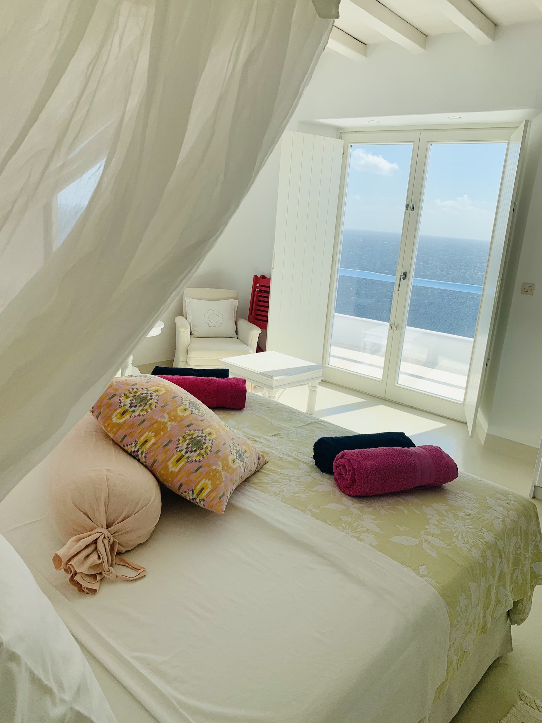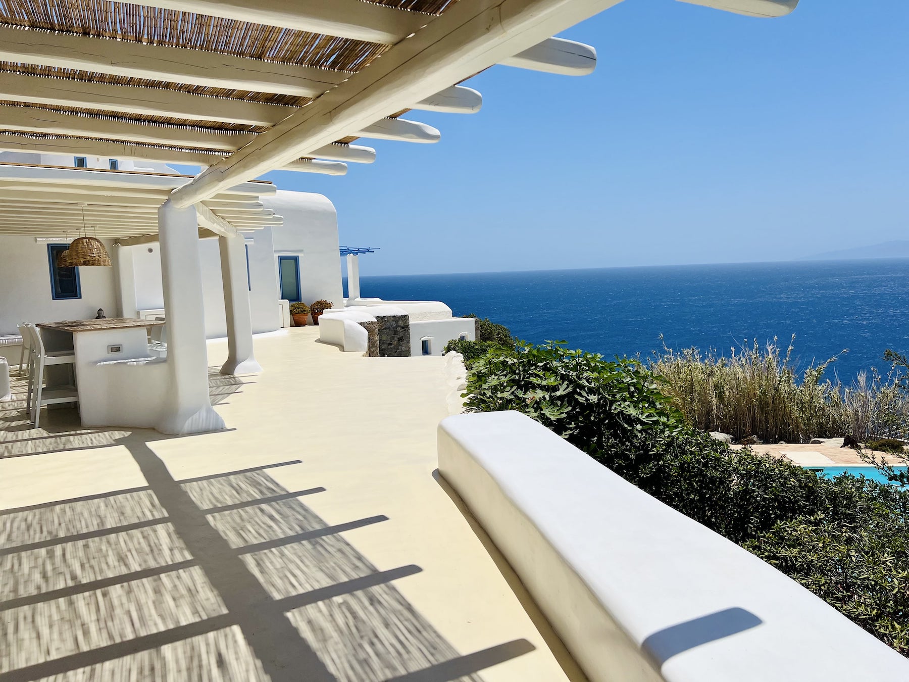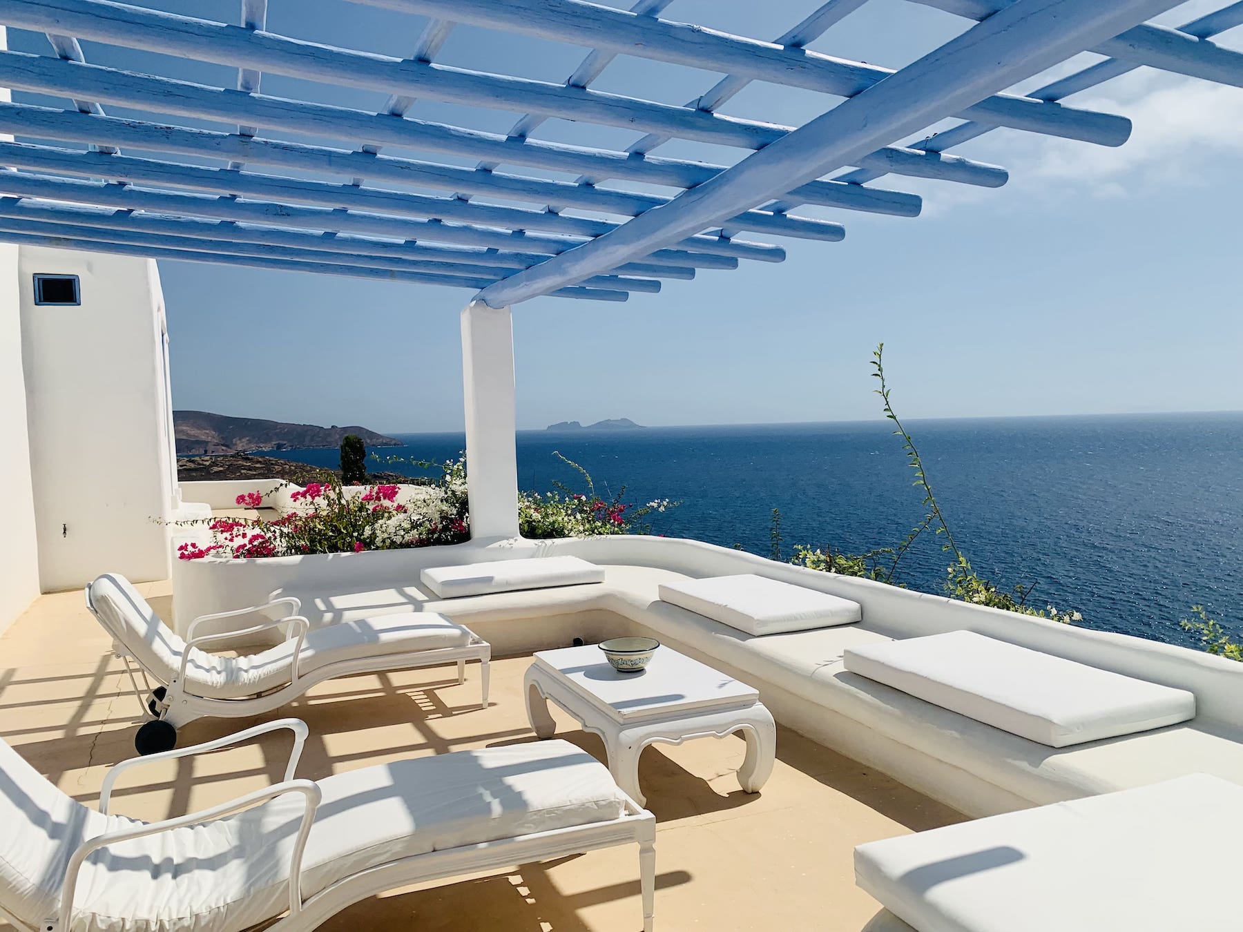 The Villa: Located 20 minutes from Mykonos town and just three minutes drive from the island's most beautiful beach, Lia, the villa accommodates up to 10 guests in five spacious bedrooms. With stunning indoor and outdoor dining areas, a Mediterranean garden, a pool, and panoramic views of Paros and Naxos, it’s the ultimate retreat. Daily cleaning, brunch preparation, and a selection of fine Greek wines make your stay as indulgent as it is inspiring.