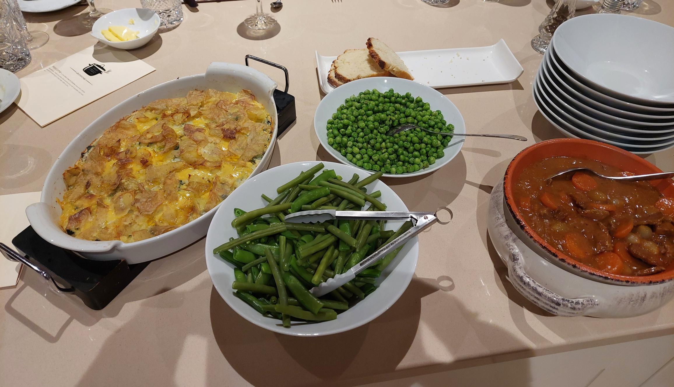 • Beef and Guinness casserole served with fresh vegetables and colcannon (mashed potatoes)