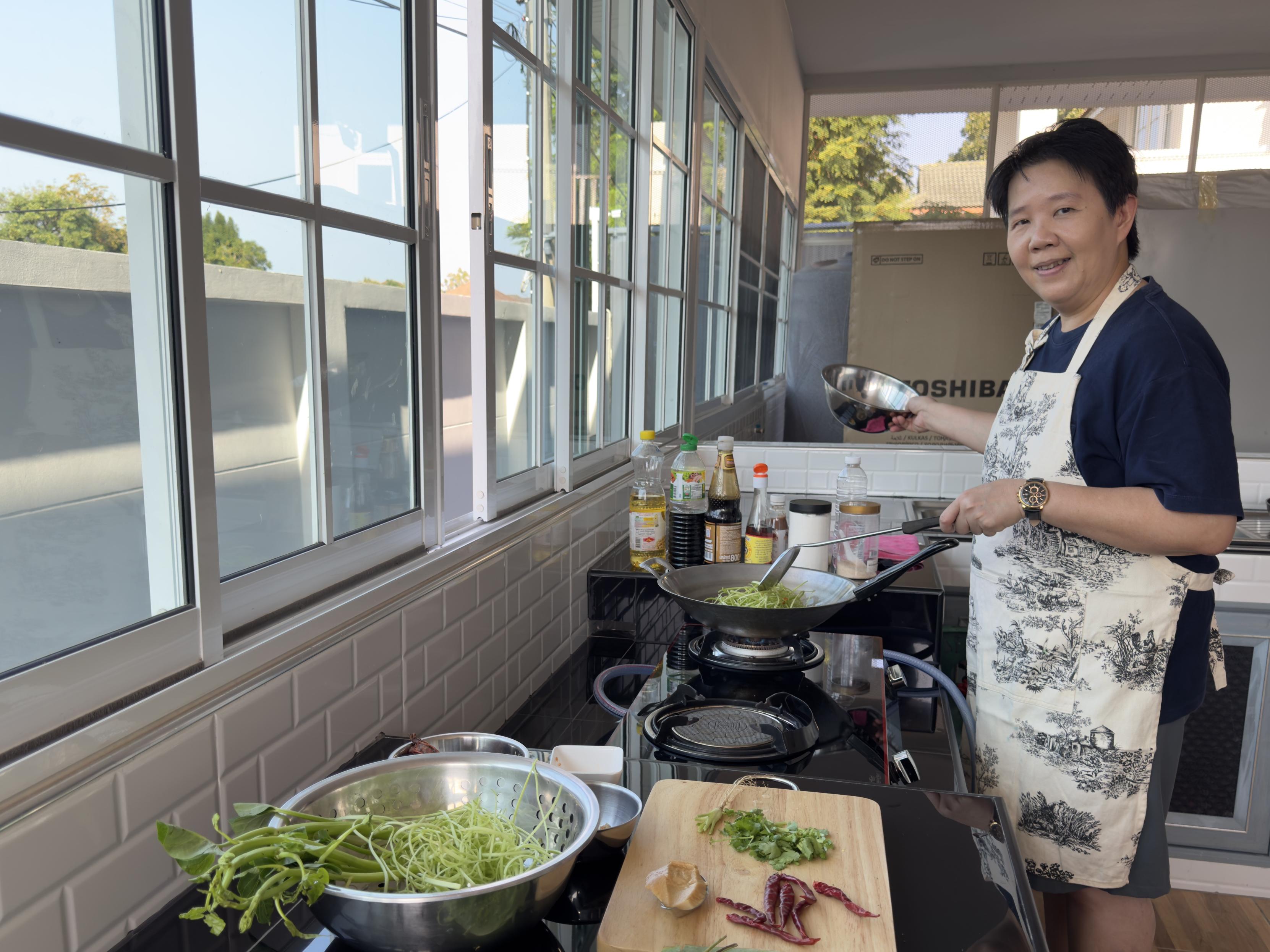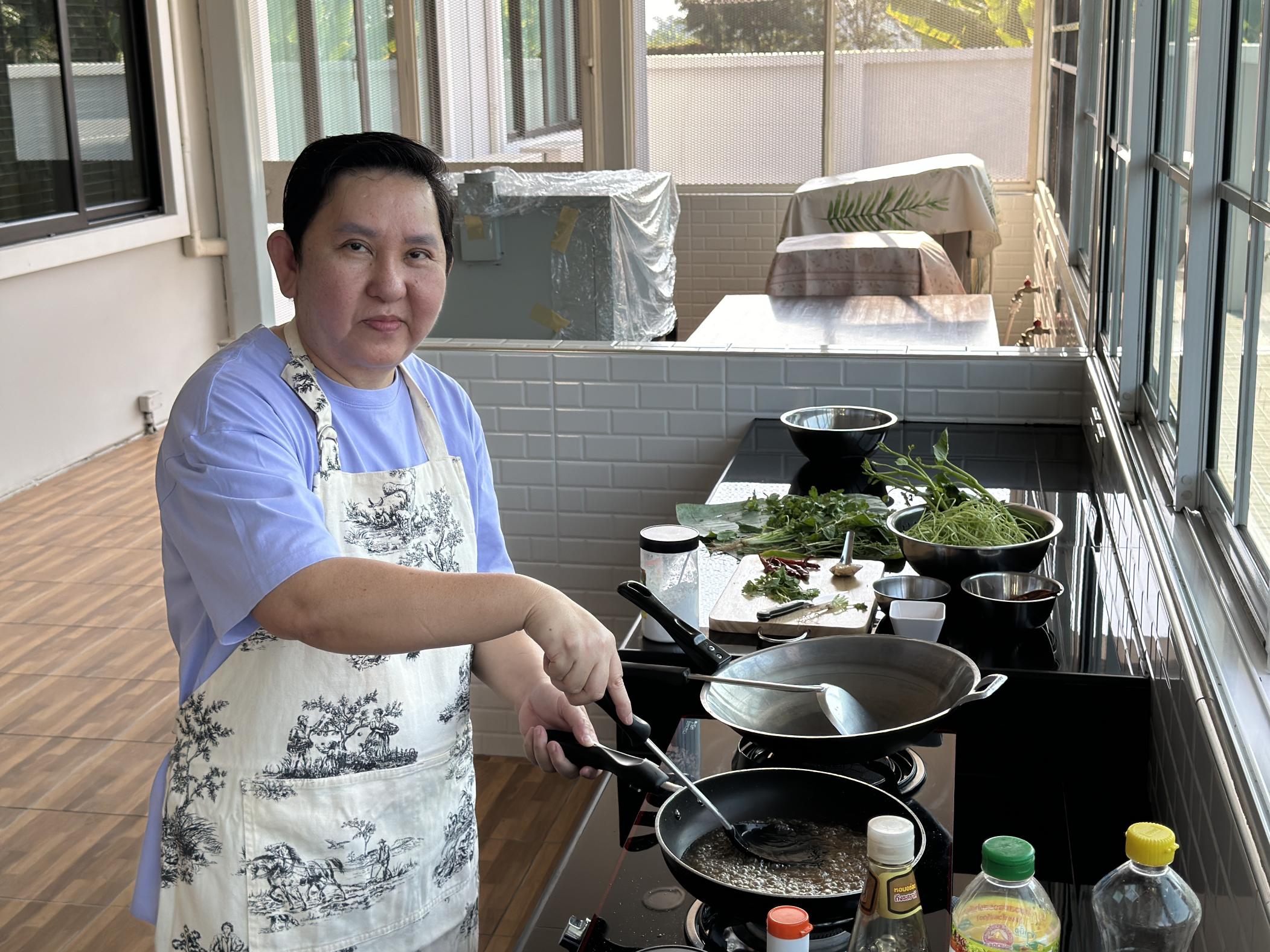 Apple is a passionate food lover based in Bangkok, offering unique food experiences in her home, not far from the international airport. She lives with her older sister, her sister’s girlfriend, and their housekeeper, while her own girlfriend, joins them on weekends. Raised in a big Chinese-Thai family, Apple grew up in a home where family meals were an essential part of daily life. From a young age, Apple spent time helping her mother in the kitchen, fostering a deep connection to food and a lifelong passion for cooking. She was an exchange student in the USA and later completed a degree in Hotel Management and worked with Sofitel, Novotel, Mercure and Ibis. Through her travels and experiences, Apple has developed an understanding and appreciation of diverse cultures. In addition to her love for cooking, Apple is an avid gardener and baker. She honed her skills in baking by completing a one-year patisserie course at the prestigious Le Cordon Bleu institute in Bangkok. Together, Apple and her family create memorable culinary experiences that celebrate both Thai and Chinese flavors.