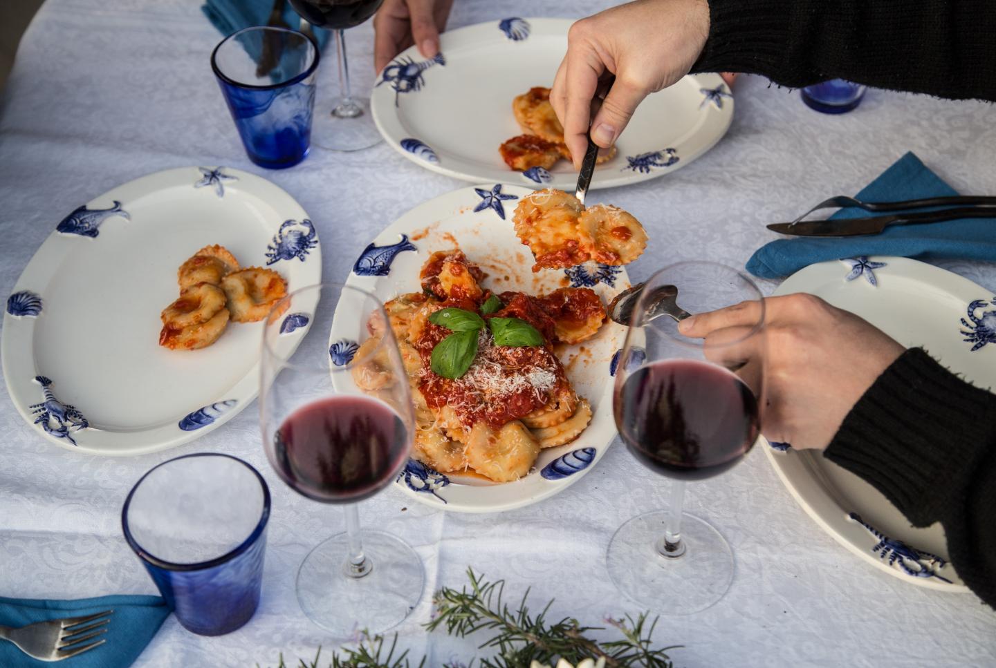 • Ravioli Capresi [handmade ravioli stuffed with Caciotta Sorrentina, eggs and marjoram herb with organic tomato sauce, paired with a glass of regional wine (vegan option available)] or Gnocchi