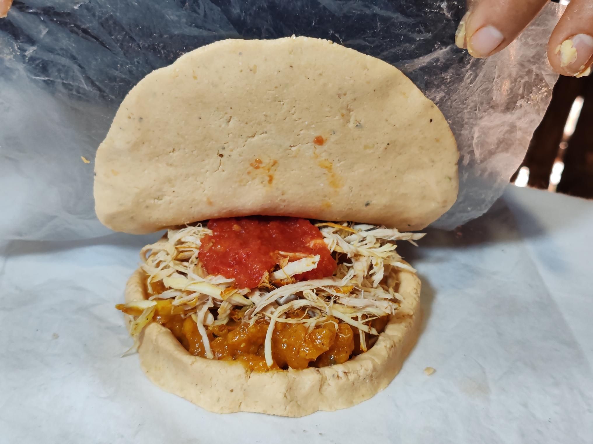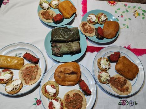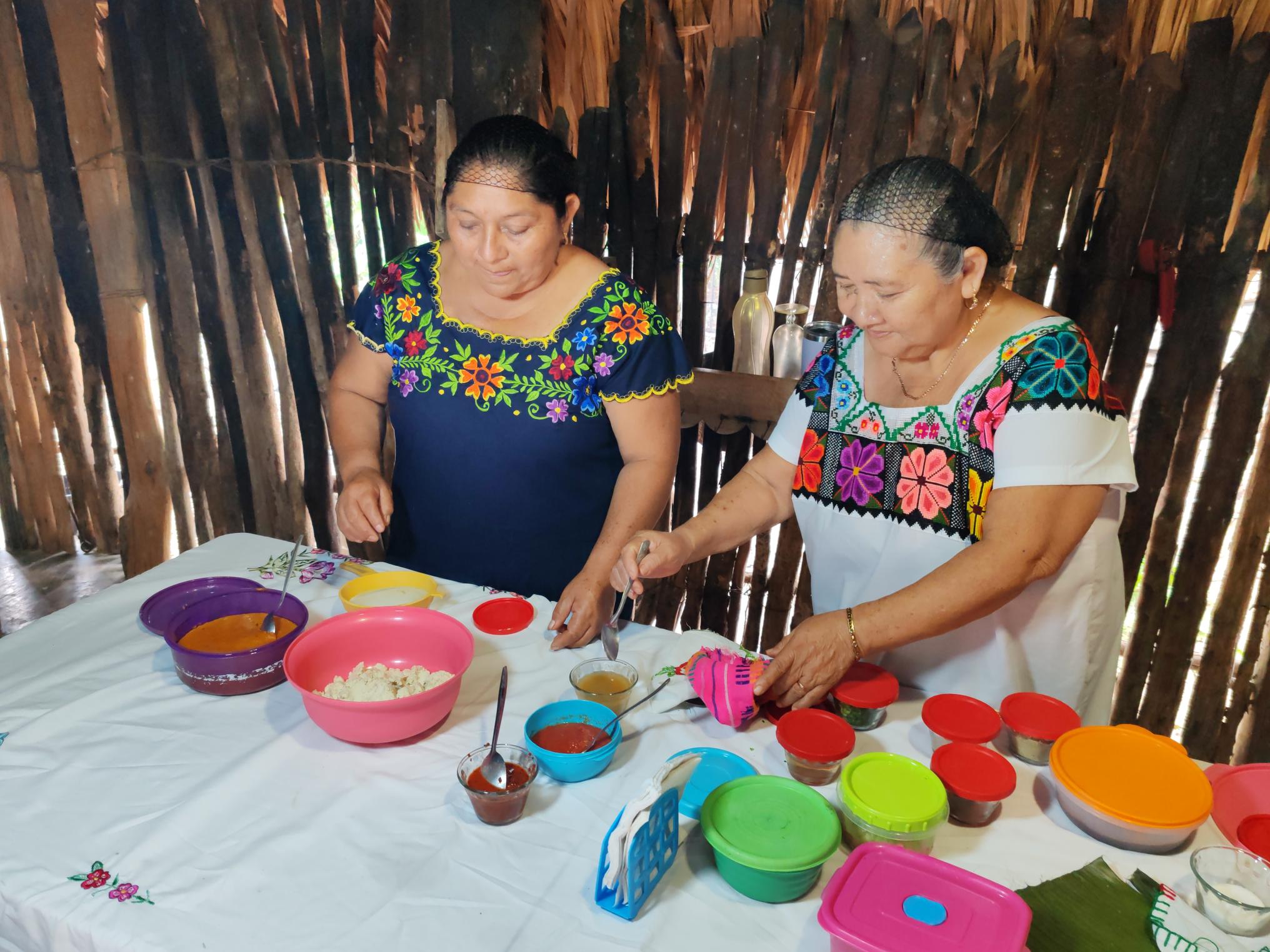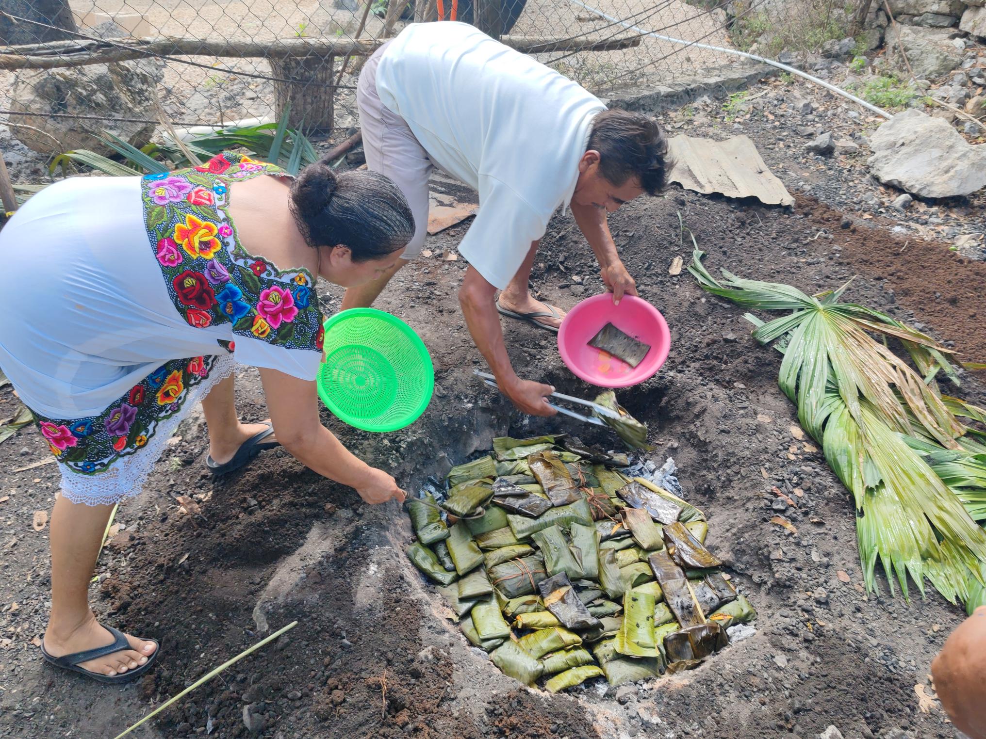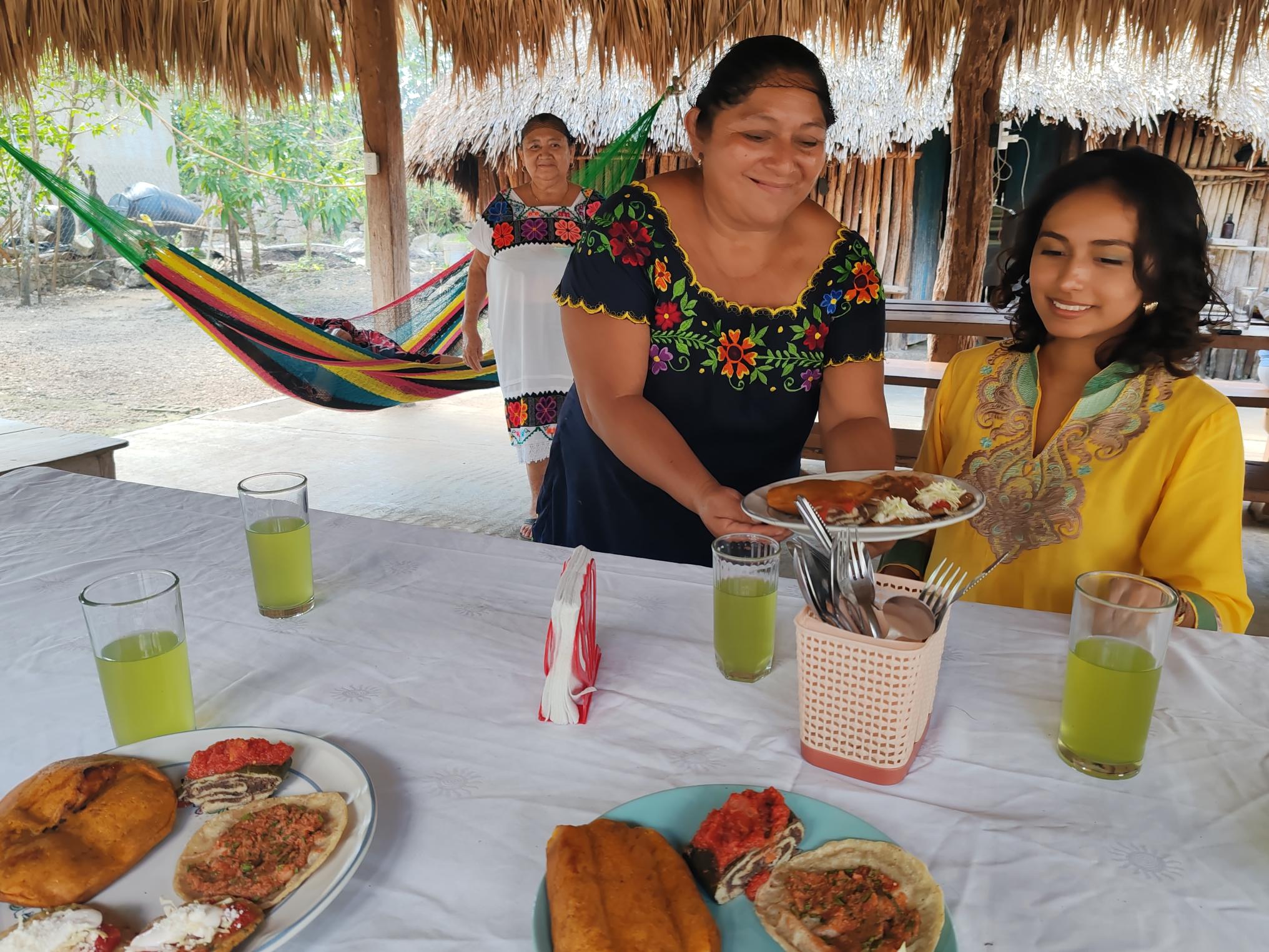 After cooking, sit down to share the delicious Mayan meal you've helped prepare. A few dishes you may enjoy include chayitas with sikil pak salsa (a traditional dish made with corn dough mixed with chopped chaya leaves, folded and fried until golden and crispy, served with a flavorful dip), pollo pibil (chicken smothered in achiote paste, orange juice, and spices) or brazo de reina tamales (a traditional dish dating back to prehistoric times, made with corn, chaya leaves, hard-boiled eggs, ground pumpkin seeds, and topped with a spicy tomato sauce, cooked in banana leaves), and habanero salsa with handmade corn tortillas, served with hibiscus flower cold tea, local beers, and seasonal fruit.