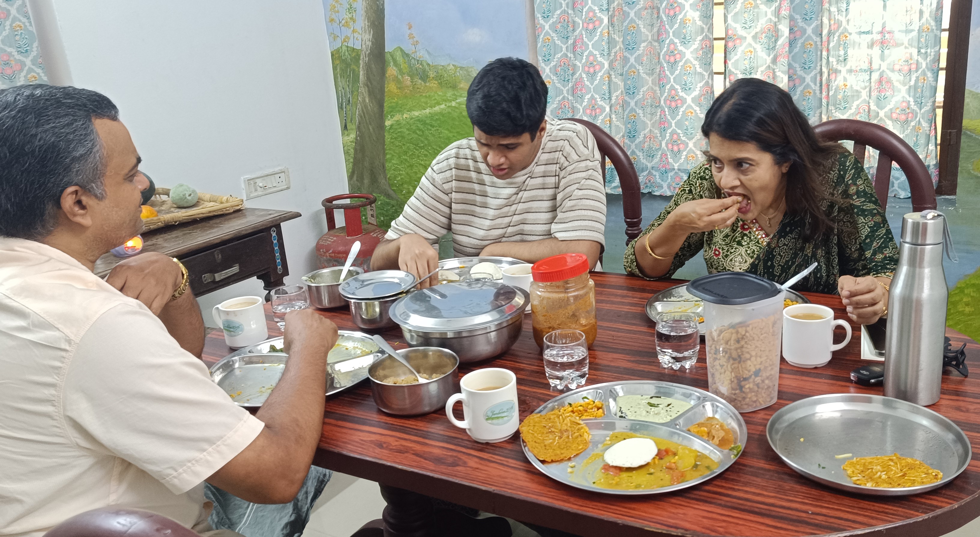 The first thing you need to know about Archana is that she's doing this because she's passionate about it. This is no side hustle, as will become immediately clear when you talk to her. She lectures at colleges and hotels. She started taking her cooking "on the road" after her friend (neighbor? I forgot the story exactly) staged an intervention saying that her family should not be the only people to benefit from it. The second thing to know is that, while this is definitely a cooking class, it has more a feeling of a home stay than anything else. We were comfortable the whole time. Her home is lovely (there's a mural in her dining room? but it's definitely just the family's private dining room), you're eating at her dining room table and cooking in her personal kitchen, she's very friendly. We chatted with her sons, who were around for vacation (it was late December). They were very helpful (one of them picked us up) and looked mildly amused at the whole thing. We met the pets. She's a veteran of the financial and film industries (not as a cook) and it shows: there was zero chaos in the kitchen. The whole thing was very efficiently run. The food was delicious and fun. Multiple types of dosas (note: not fast food dosas) were fun to put on the skillet, the how-to about the chutneys was useful. It wasn't a showcase, but I think it was the best sambar I had in Kerala. Some of it I'm going to immediately use at home - fried fresh figs are going to be a showstopper the next time I have guests. Notes on prepping mustard seed and curry leaves are also things I'll take away. Freshness is no joke: "oh I picked these in the backyard this morning" style. Apparently Konkani cuisine just cannot be stored overnight. Highly recommended.- Jesse January 08, 2026