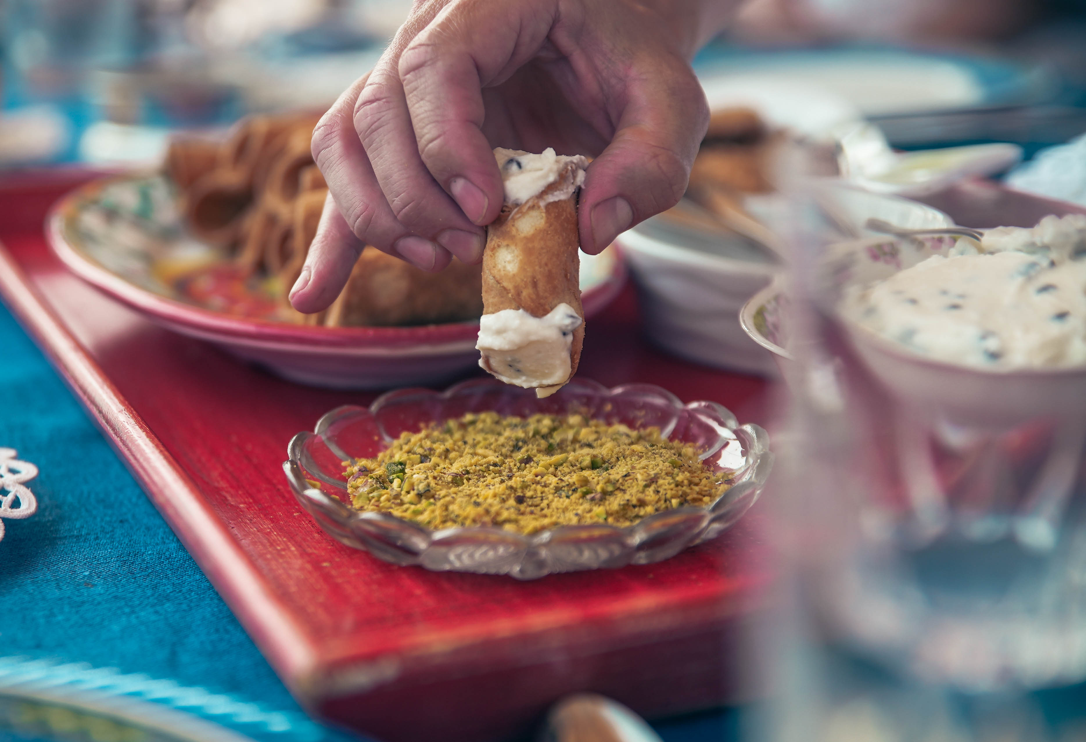 In-home meal: (1-12 guests) Enjoy an authentic home-dining experience in a historic seaside villa overlooking the Gulf of Ognina - a hidden gem just beyond Catania. Francesco’s cooking is a tribute to Sicily’s rich culinary heritage, featuring ancient grains like Tumminia and Russello in time-honored recipes passed down through generations. Each ingredient tells the story of the fertile Etna region, from sun-ripened volcanic tomatoes to wild, aromatic herbs. Together, you’ll share traditional dishes such as caponata di melanzane (Sicilian eggplant stew) and pasta alla Norma topped with fresh ricotta salata. The meal concludes with classic Sicilian cannoli filled with ricotta cream and pistachios, all paired with local wines for a truly authentic and flavorful experience.