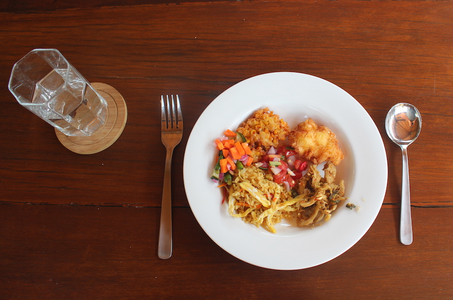 In-home meal: (1-9 guests) Your meal will include dishes from various regions of Indonesia. The menu feature include dishes like fish satay, nasi goreng (fried rice, Indonesia’s national dish), bregedel (corn fritters), succulent battered shrimp, a variety of fresh, tropical salads and seasonal fruits and traditional Balinese sweets for dessert.