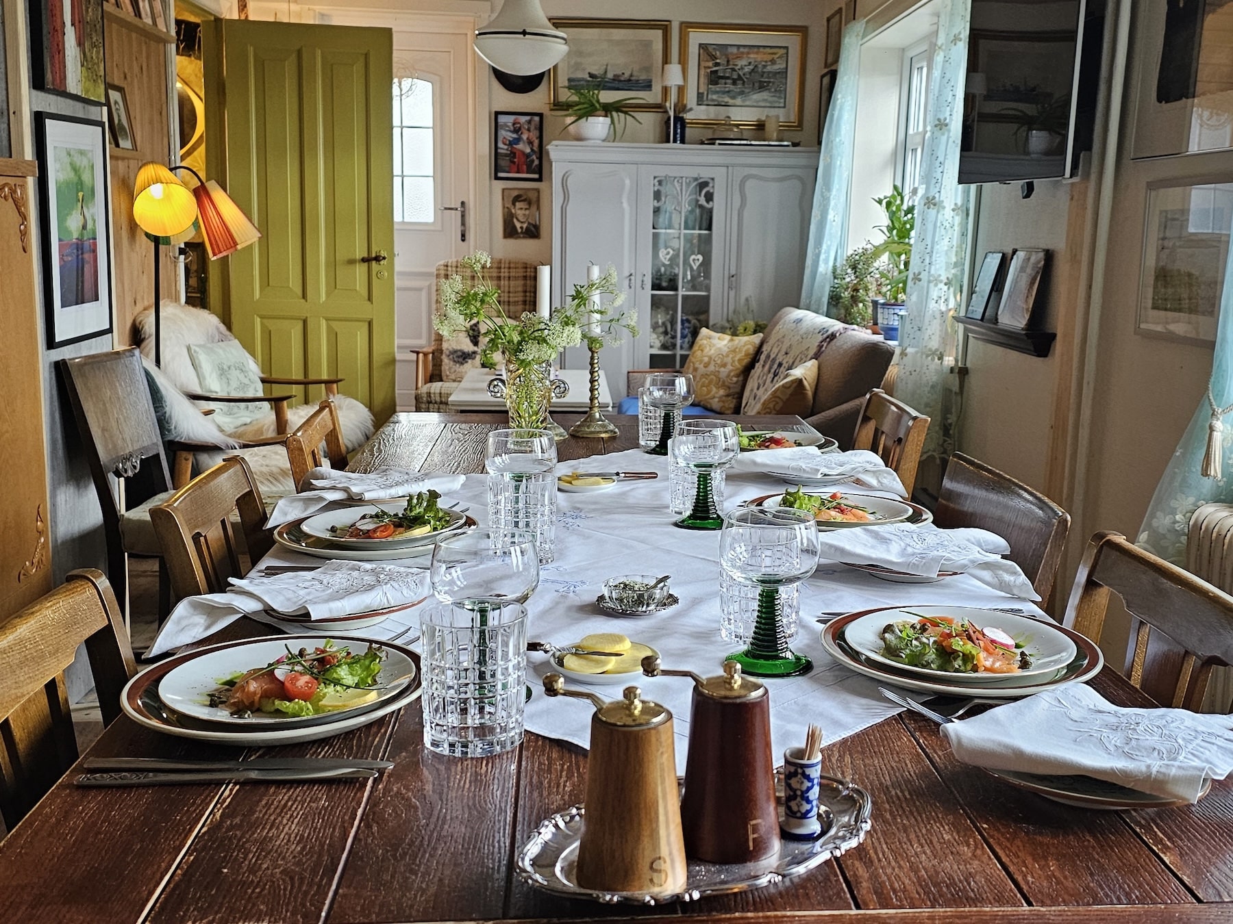• Faroese smoked salmon served with seasonal sides, or Homemade vegetable soup made with fresh produce from Maud’s garden