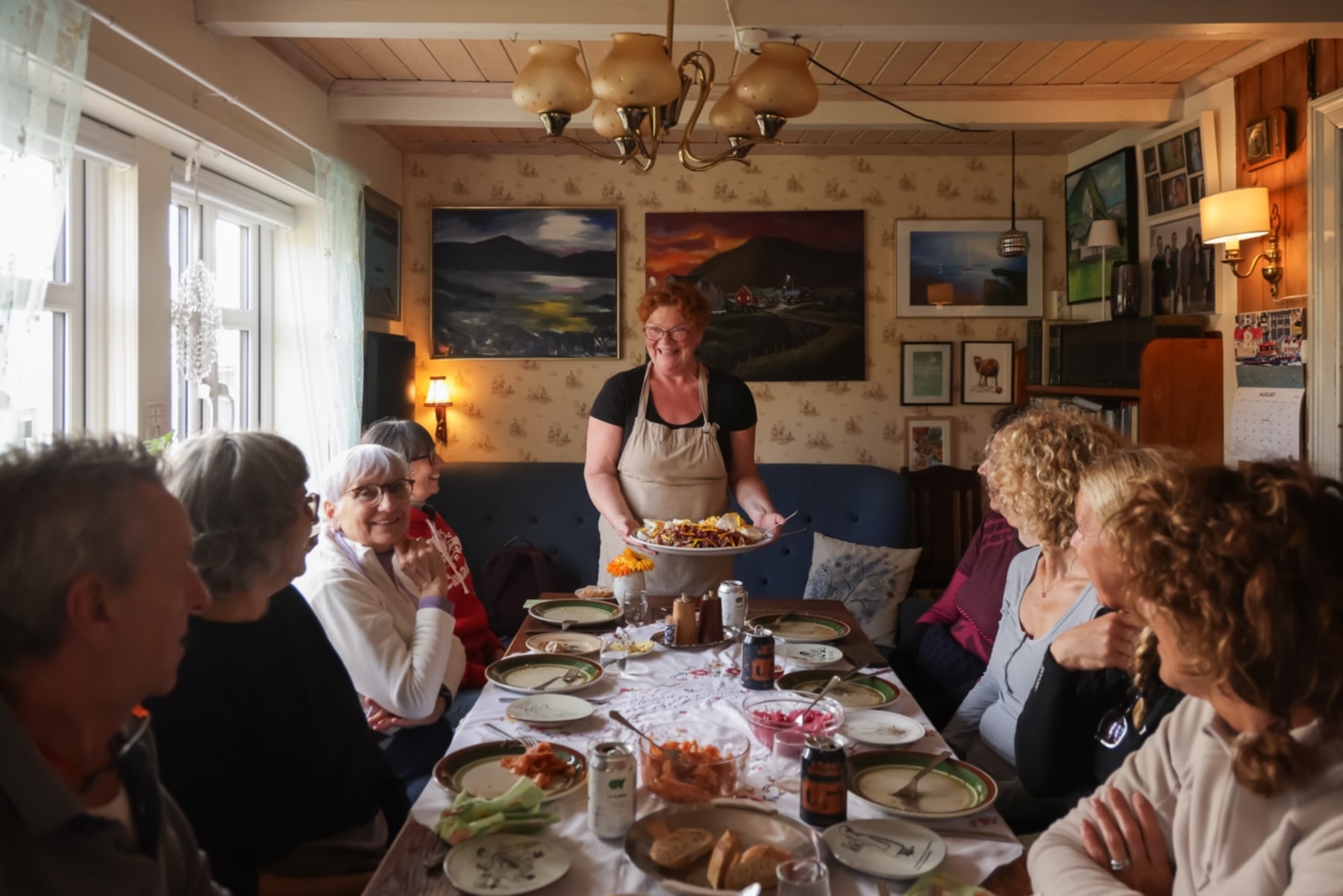 Maud welcomes guests to her grandparents’ home on the island of Nólsoy, just a 25-minute ferry from Tórshavn. She learned to cook from her grandmothers and delights in sharing her passion for local, sustainable food. Guests can enjoy homegrown vegetables, pickles, and preserves while learning about sustainable living and traditional Faroese cuisine. Maud often hosts alongside her husband, Fríðrik, a sailor, and invites visitors to connect over meals in their cozy living room, experiencing Heimablídni, Faroese warmth and hospitality in Nólsoy.
