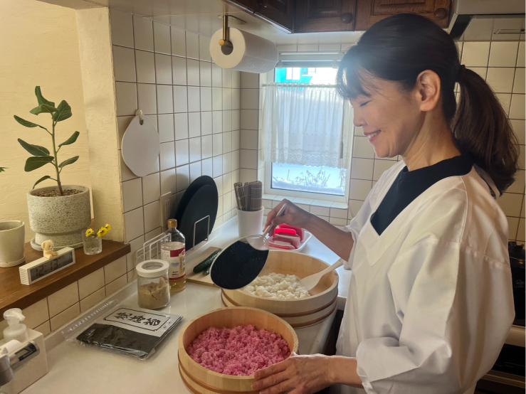 Tomoko is a certified decorative sushi instructor based in Kitahiroshima, near Sapporo, Hokkaido. She raised her three children preparing homemade Japanese meals and has extensive experience in traditional home cooking. In 2024, she earned her certification as a decorative sushi (kazari maki sushi) instructor. Today, Tomoko is delighted to welcome travelers visiting Hokkaido to her home near Sapporo, where she shares the joy, creativity, and beauty of making flower-themed decorative sushi rolls. This hands-on Japanese cooking class in Hokkaido offers guests the opportunity to learn how to make sushi from scratch in a warm, home-style setting.
