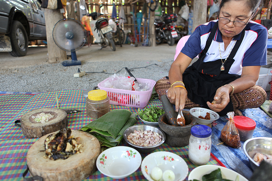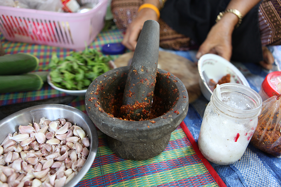 Cooking experience: (2-15 guests) In your hands-on Chiang Mai cooking class learn to cook family recipes alongside Nid and her mother. Be prepared to chop, mince and pound as you create a beautiful Northern Thai meal featuring recipes perfected by Nid and her mother over the years. As with many traditional Thai families, Nid's mother does her cooking outside. You will be sitting outside Nid's family home on mats placed on top of the ground, and together with Nid and her mom enjoy a hands-on cooking lesson where you will have the chance to make some of the authentic Northern Thai dishes you won't find in other Thai cooking schools or restaurants.