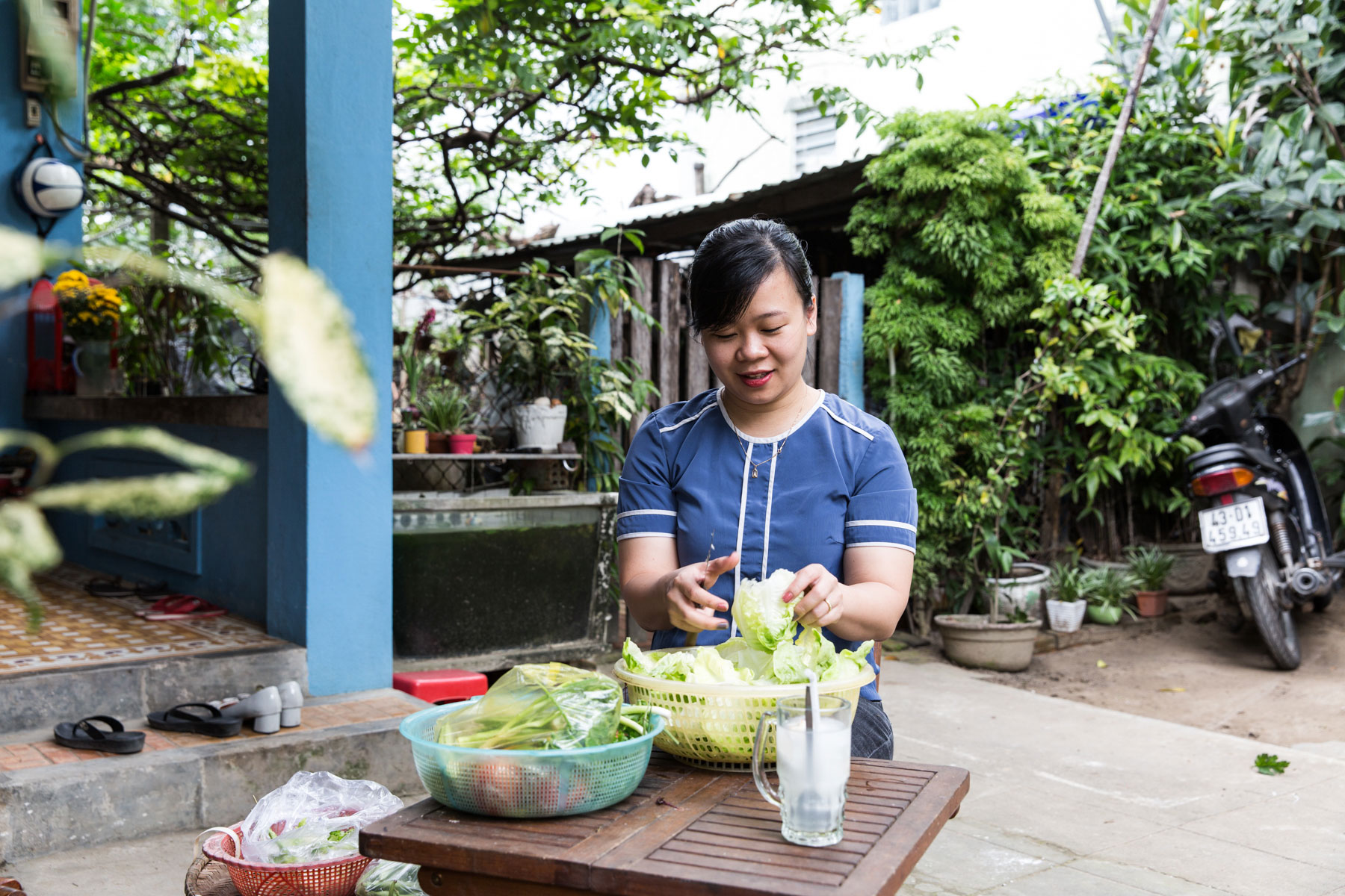Market visit: (2-4 guests) Meet Diep at her home before you take a taxi to Danang's Dong Da market. This is the large, bustling market that sells a wide variety of products, especially fresh seafood. Diep will introduce you to the local produce and show you some of her favorite vendors and, as you explore you might pick up a few ingredients to be used in the meal. You will spend about 45min-1hr at the market before returning to her home to start cooking.