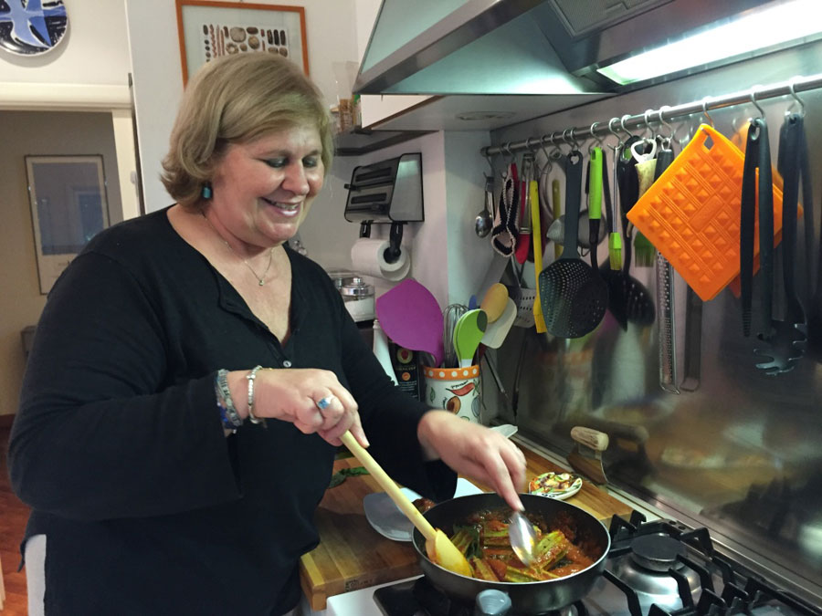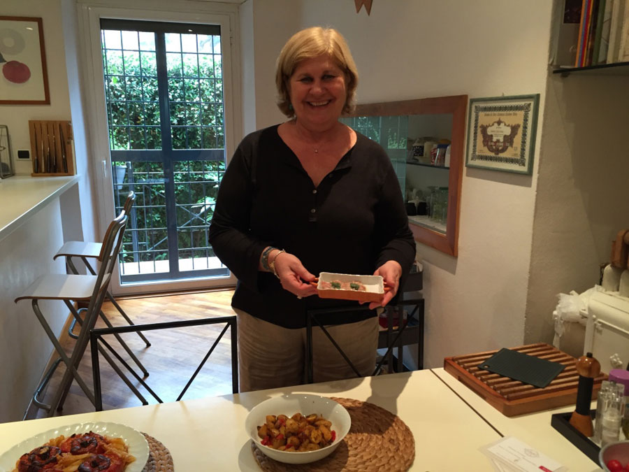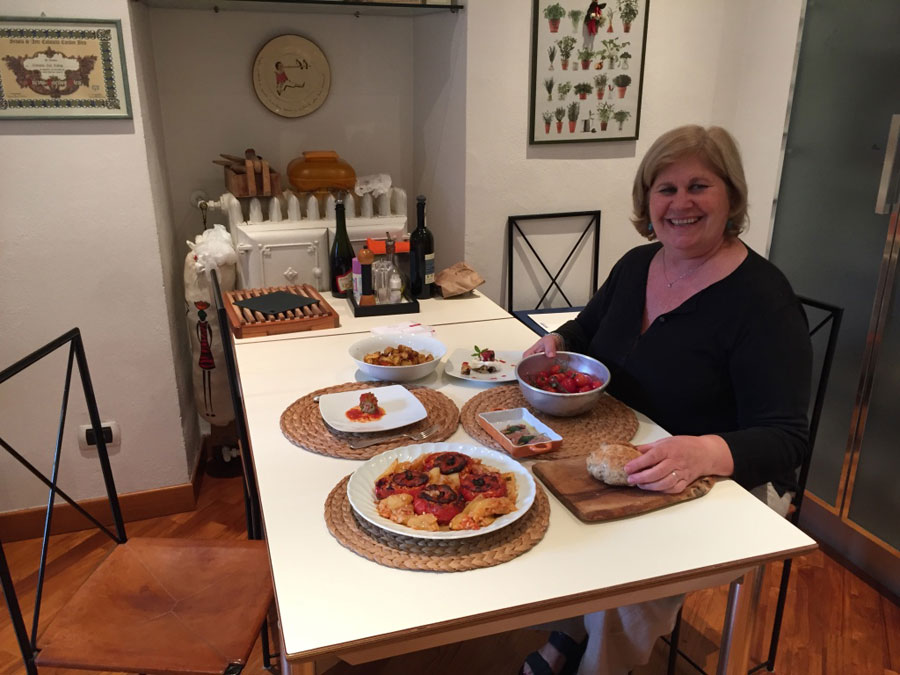 Born in Naples, Daniela has a wealth of knowledge about Italian culinary and cultural traditions. She moved to Rome when she was six but continues to embody the Neapolitan spirit with her friendly and welcoming personality. She learned to cook as a young girl watching her mother and grandmother passionately work in the kitchen. Now as a mother herself, Daniela has passed on her love for cooking to her youngest son Francesco, a chef that worked at a 3 Michelin star restaurant outside of Lyon. Francesco has now joined the family venture with his fiancée Constance, sommelier, bringing their professionalism and a contemporary touch to the school. After working for Alitalia for 26 years and studying at the famous Cordon Bleu, Daniela opened a catering business and teaches cooking classes. Daniela currently lives in a classic Roman apartment with her husband Giovanni on the Aventine Hill, one of the seven hills of Rome. She is very passionate about discovering new cooking techniques for her dishes, cooking for other people, and making friends all over the world. In her home, Daniela prepares authentic Roman, Neapolitan, and Sicilian food. Roman cuisine is comprised of a few ingredients such as pancetta, guanciale and pecorino to make sauces such as carbonara and amatriciana. Neapolitan cuisine is composed of a variety of ingredients such as eggplant, zucchini and potatoes combined with the use of garlic, tomatoes and basil. Pizza, of course, is traditional Neapolitan. Sicilian dishes tend to be seafood with fresh vegetables, dried fruits and spices.