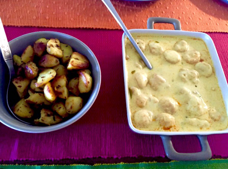In-home meal: (1-6 guests) Sujata and her daughters, if they are home, will welcome you into their artistic home located in a heritage area close to Qutub Minar. The area near their apartment is lush and green, surrounded by trees, old monuments and tombs. Sujata also has a beautiful terrace area with a garden and when it is not too hot you can sit outside for your meal. Sujata will walk you through a background on Indian or Iranian food (let her know if you have a preference when you book!) while you sip on your welcome drink. Your menu might include North Indian dishes such as aloo puri (spicy potato gravy served with puffed, deep-fried Indian bread), kadhi rice (rice with a yogurt based gravy), or rajma (red kidney beans), or Iranian dishes such as aubergine khoresht (eggplant stew) and rice, lamb kabab, mirza ghassemi (grilled aubergine), torshi tareh (sour herb stew), or sabzi khoresht (vegetable stew with chicken or lamb). End your meal together with a dessert like kheer (sweet rice pudding).