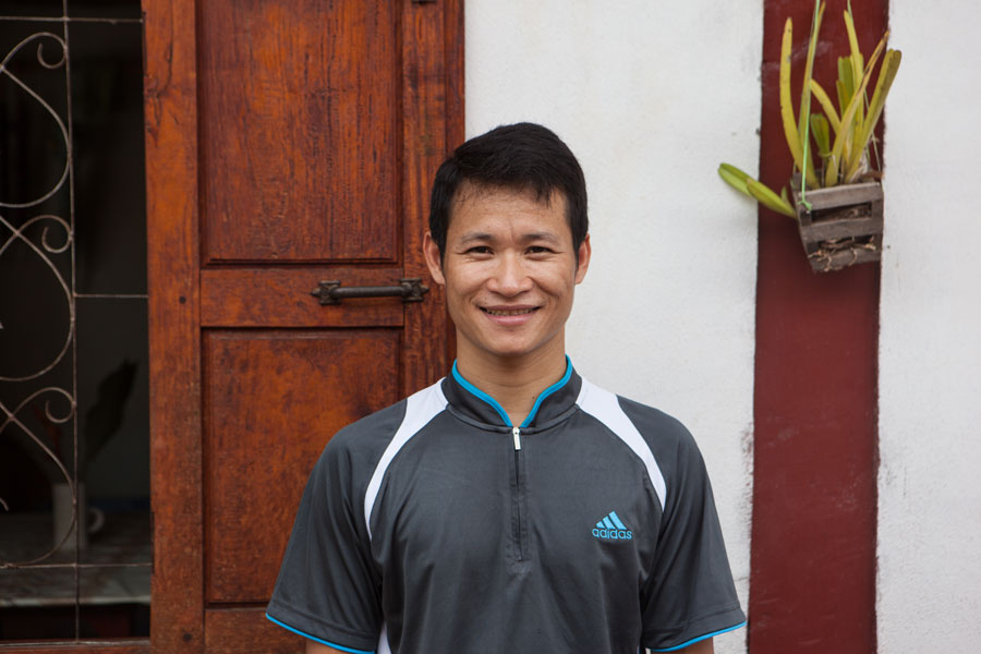 Si received his education and learned English as a monk. His parents, who were unable to read and write, wanted their son to be educated and sent Si to a temple far from their countryside home to study. Si was determined to use that opportunity and learned to read and write, taking extra English classes as a monk, and then starting work directly after high school. He now works in operations for a travel company in Luang Prabang. He is a friendly young man who warmly welcomes you into the house that he built for his family. Si is a member of the Tai Lue tribe, a people of the lowlands and one of three tribes in Luang Prabang. He lives in a modest, rural home along with his mother, Tailu, who was orphaned during the war, and his wife, Nee, who is from the Sang Hai village, along with their young children.