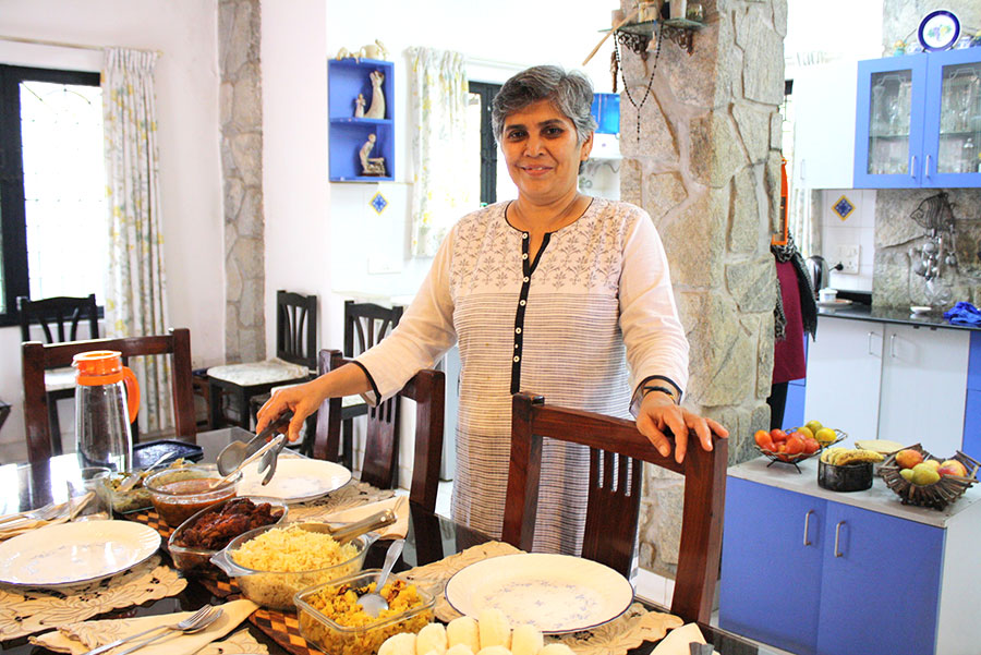 In-home meal: (1-6 guests) Wilma warmly invites you into her apartment located in the charming Cooke Town area of Bangalore. Begin your visit with a refreshing welcome drink as Wilma introduces you to the flavors of Mangalorean cuisine - an enticing blend of spices, coconut, and fresh ingredients like fish, meat, and vegetables. A highlight of Wilma’s home-dining experience in Bangalore is her Mangalorean breads, traditionally made from rice flour. At the dining table, savor a delicious menu that might include chicken stew with hot appams (fermented rice crepes), pork bafat and sannas (spicy pork curry with steamed rice cakes), fresh salad, and flavorful Indian lentils. Conclude your meal with a sweet treat like kheer (rice pudding) or gajar halwa (carrot pudding), leaving you with a taste of Wilma’s heritage and hospitality.