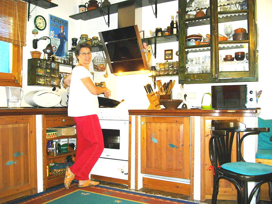 Erna and her husband, Thanos, live in a seaside village, Epanomi, outside of Thessaloniki and both share a common passion for food and hospitality. Erna is a native Austrian and has been living in Greece, where she moved after marrying Thanos, for the past 30 years. Erna first learned to cook in school, where cooking classes were part of the curriculum, and she developed a passion that started in the classroom and traveled home, where she fondly remembers recreating dishes learned at school for her family. Erna's in-laws were both professional cooks and she learned traditional Greek cooking from them. She knew she couldn’t compete with their professional cooking skills, so she started to innovate and create her own dishes, which are traditional Greek recipes with an Austrian twist!