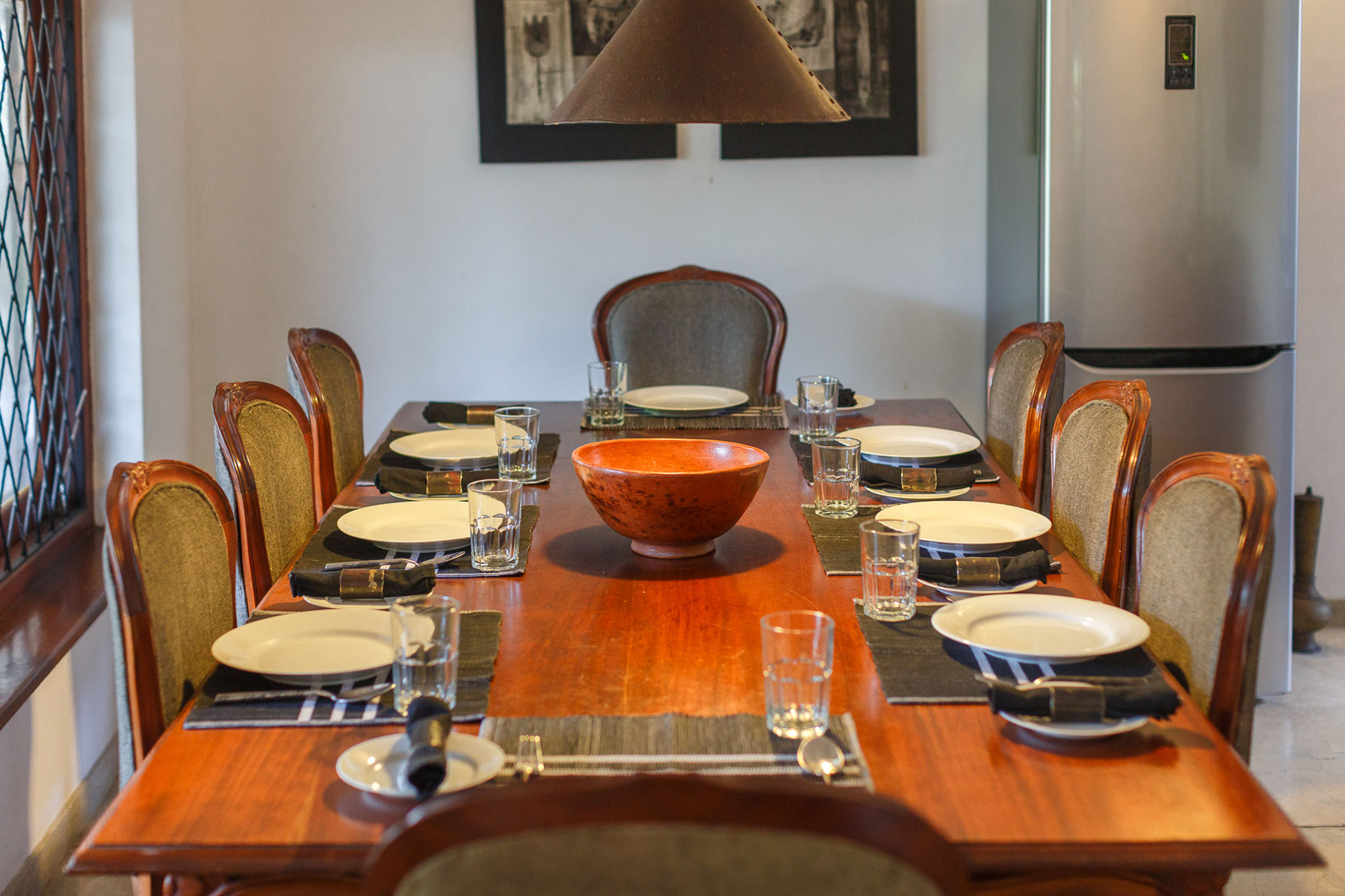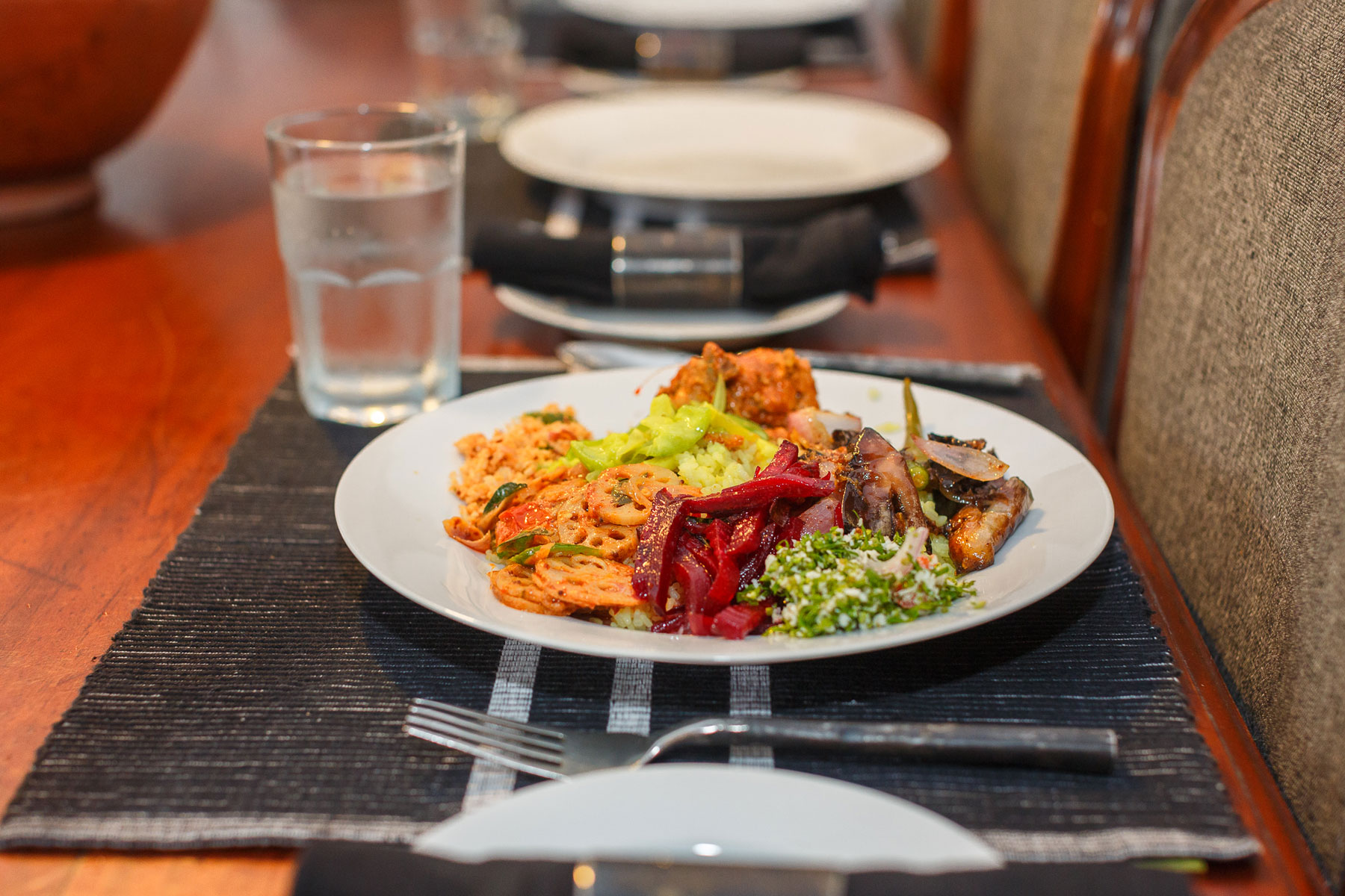 The food was colorful and it goes without saying, delicious. The typical assortment includes a fragrant yellow rice, red chicken curry, sliced lotus root, beetroot, a type of Sri Lankan gourd in a yellow coconut milk curry, a mallung or leaf salad dressed with ground coconut and Mohara's signature eggplant dish with vibrant green chillies and onions. This is typical Sri Lankan fare but much lighter than what is found usually in restaurants and the vegetables have a crunch to them. We ate with our hands to get the full benefit of mixing all the Sri Lankan curries but cutlery is provided - I recommend eating with ones hands as you'll never be able to truly mix rice & curry with fork and spoon! Guests may wish to ask Mohara about her background growing up in the forests of Sri Lanka's Vavuniya district in the 1940s and 50s.