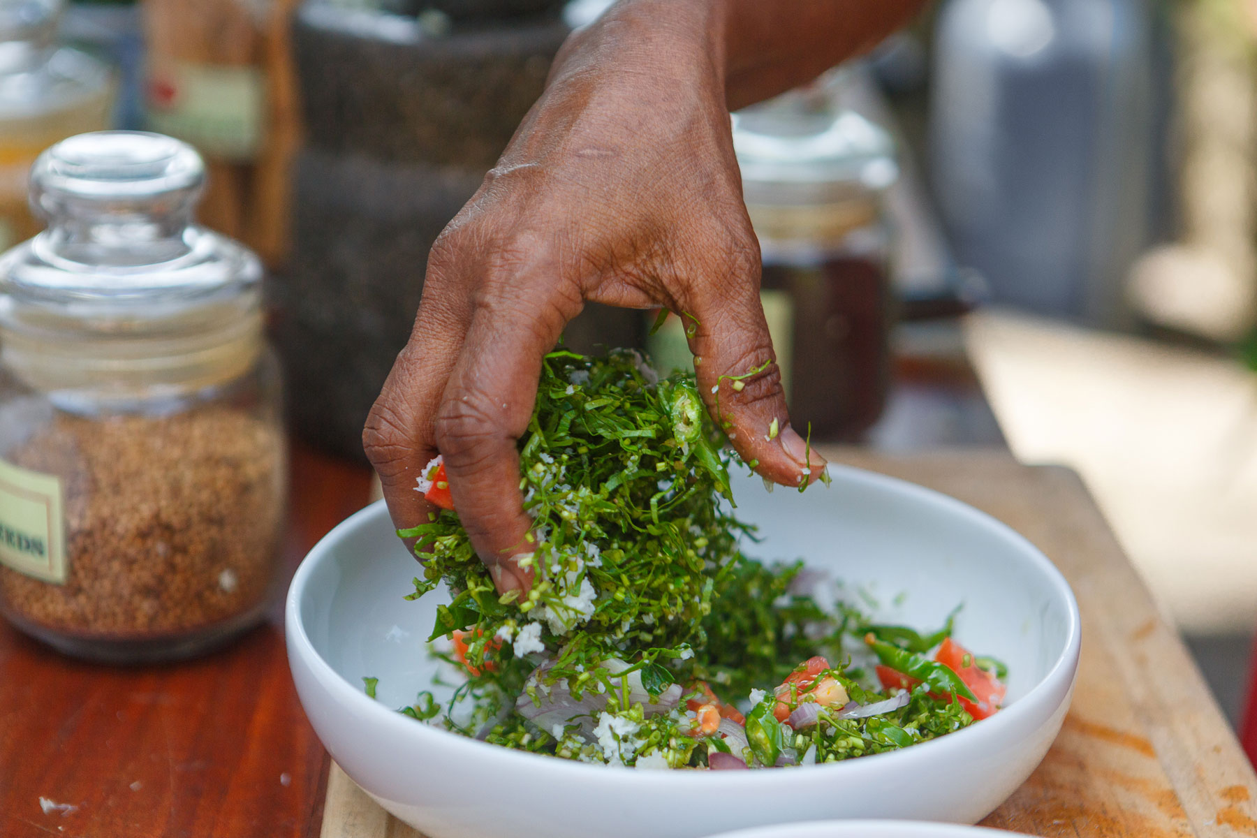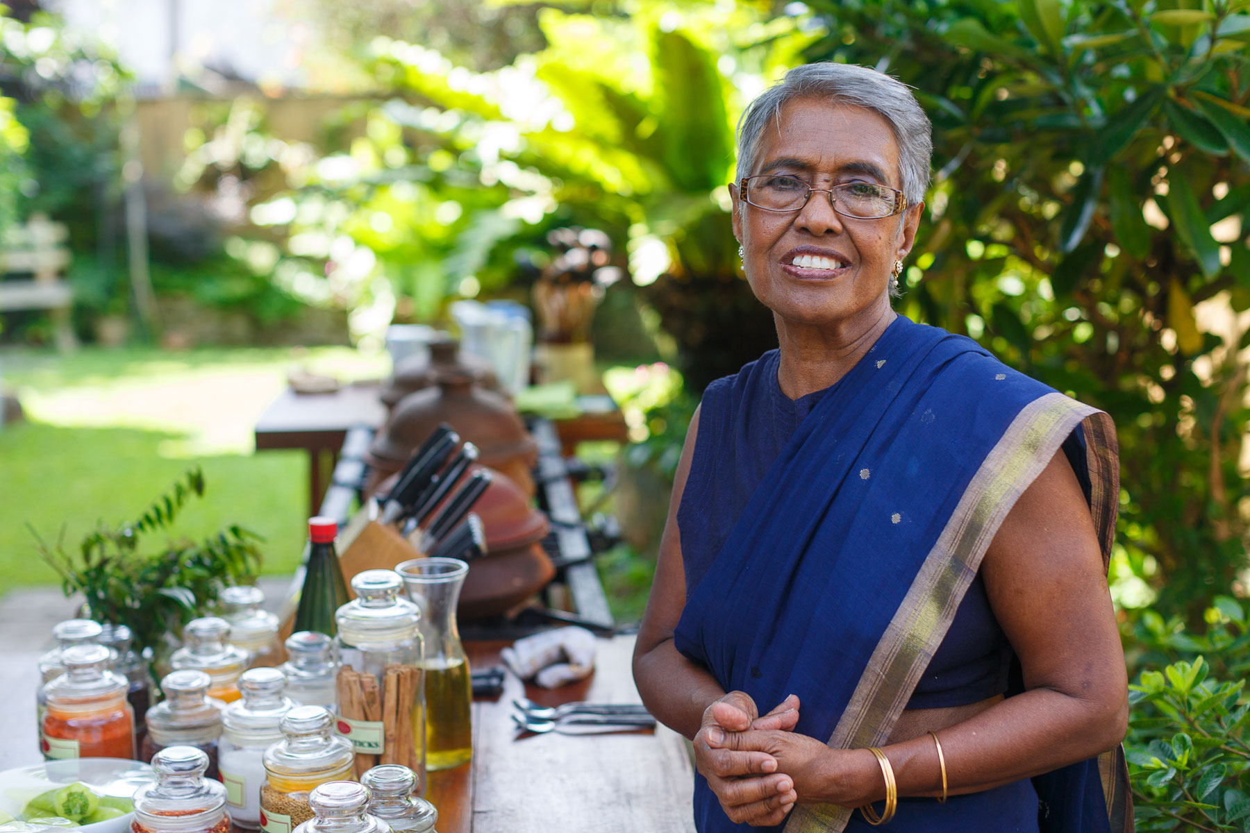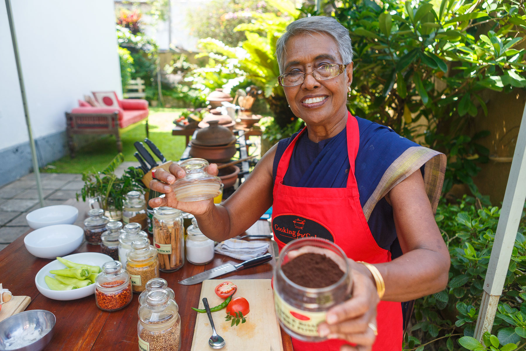 Mohara is a Sri Lankan grandmother who is full of life, love and energy. Mohara started a bakery several years ago that provides breads and savory products to supermarkets in Colombo. She is incredibly passionate about Sri Lankan cuisine and teaches cooking classes at her home that she has branded Cooking by Colour. In her own words, "I love cooking as it is a form of play and worship – a form of self expression.” As a single parent, Mohara found a way to prepare quick, nutritious meals for her children that were appealing to all the senses, while making the preparation and sharing of the most simple home cooked meal a special occasion. Her cuisine is a result of the influences of her Malay heritage as well as the rich traditions of her Sinhalese and Tamil friends and neighbors. Mohara has created a delightful repertoire of curries and sambols that have distinctive colors, flavors and aromas that she cooked for her children and their friends. She now loves to share her rich culinary and cultural traditions with foreign travelers.