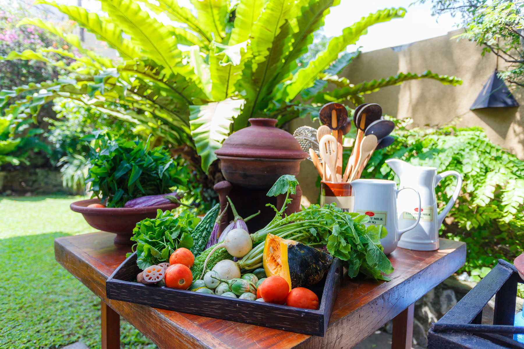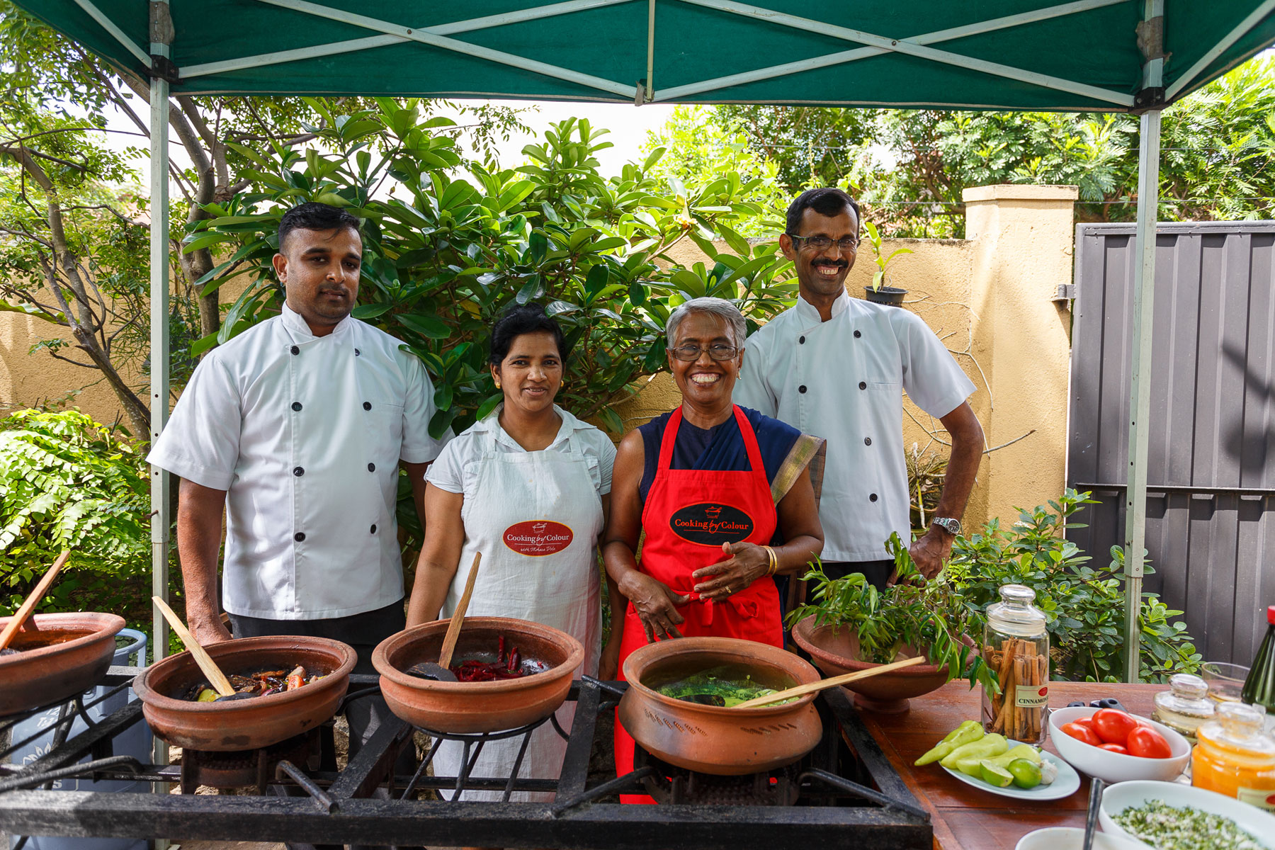 Mohara is a vibrant and friendly lady who has considerable experience in the field of food and catering although she is mostly self-taught as I gathered. She has her own brand - Cooking with Colour as well. Her home is pleasant and her choice of music was Western classical but very subtle. The cookery demonstration is conducted in her delightful little garden by the entrance, in traditional Sri Lankan earthenware/clay pots. She has two to three assistants (two of whom are clad in chef's whites) and the whole approach is quite professional yet homely. There is a clean bathroom for guests. Guests may wish to consult Mohara beforehand if they are driving their own vehicles - there is parking but can be tight for larger vehicles.