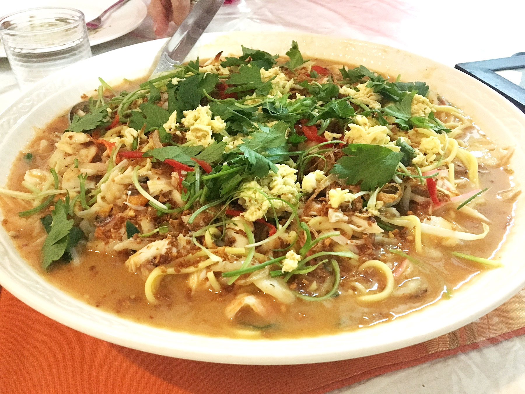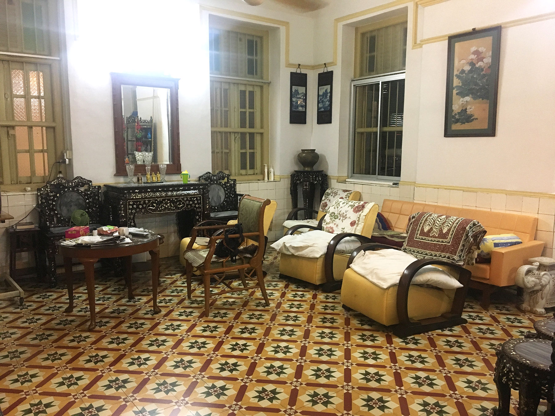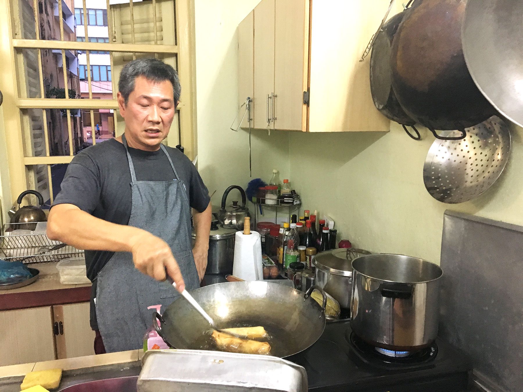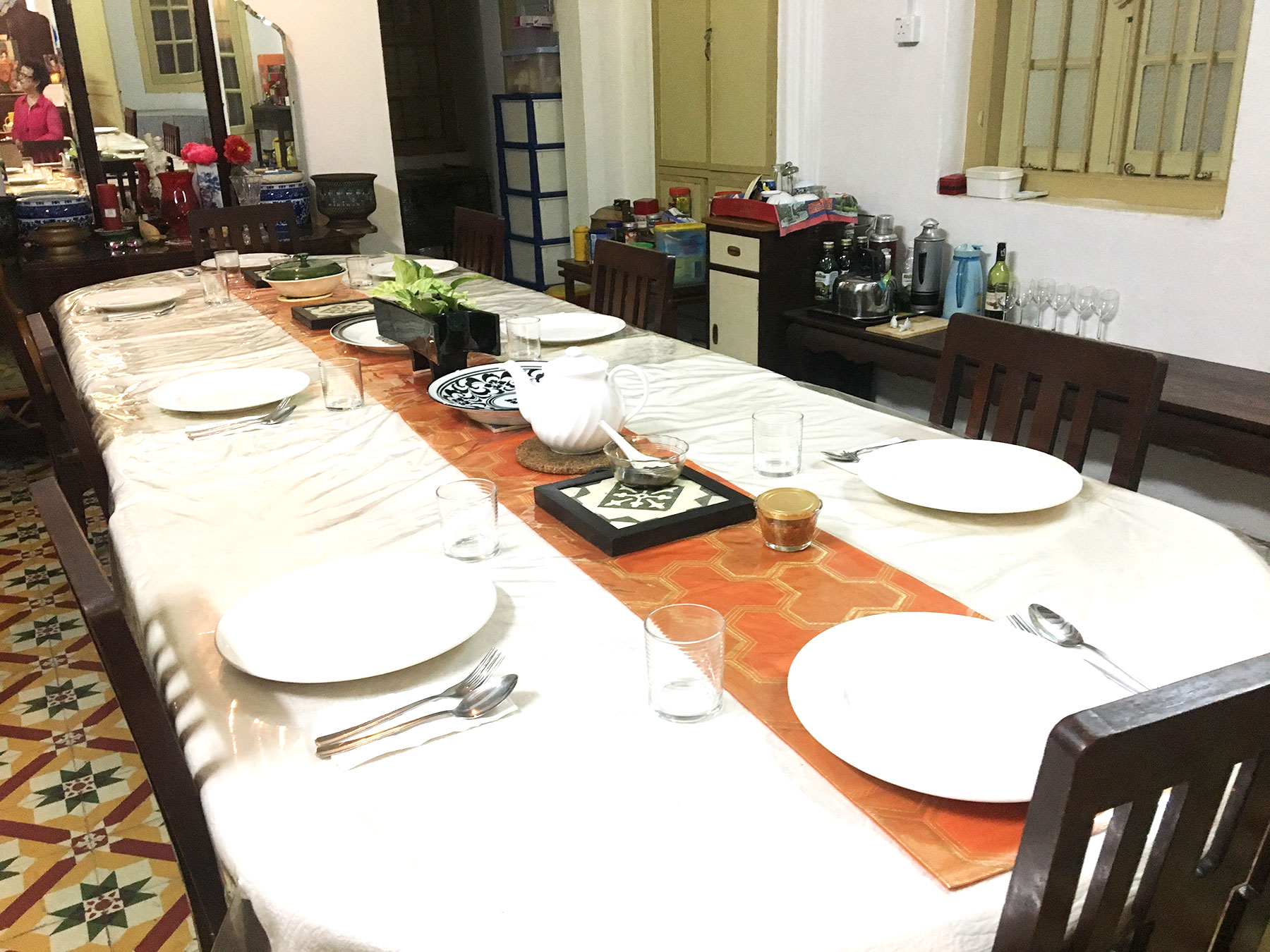 Eating dinner in David’s home felt like I was invited to be a part of his family for one night. David lives in a large home on the outskirts of central George Town that his family has lived in for several generations. Upon entering, I was shown photographs of the family’s ancestors that had lived in the house and was given a short tour of the first floor and history of the antique floor tiles. David’s kitchen was large enough for me plus 2-3 others to comfortably stand and watch him cook as well. Food was very good – I loved everything I ate. I enjoyed the Penang style spring rolls filled with crab and mushrooms & a homemade Worcestershire dipping sauce the most – this was interesting to me because it spoke about Penang’s British influence in Penang. Worcestershire sauce is not a common condiment found with Asian cooking however David said the Chinese immigrants to Penang worked in British kitchens and picked up on this recipe and still use it today. Each dish was served in a row as it was ready, and David’s family explained the ingredients and history. Overall I loved the experience and was reminded of my own family gatherings. I really felt as if the family was genuine in their warmth and invitation into their home—I would definitely recommend the experience to anyone else!