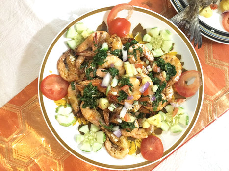• Butter prawns with spicy mint fish sauce