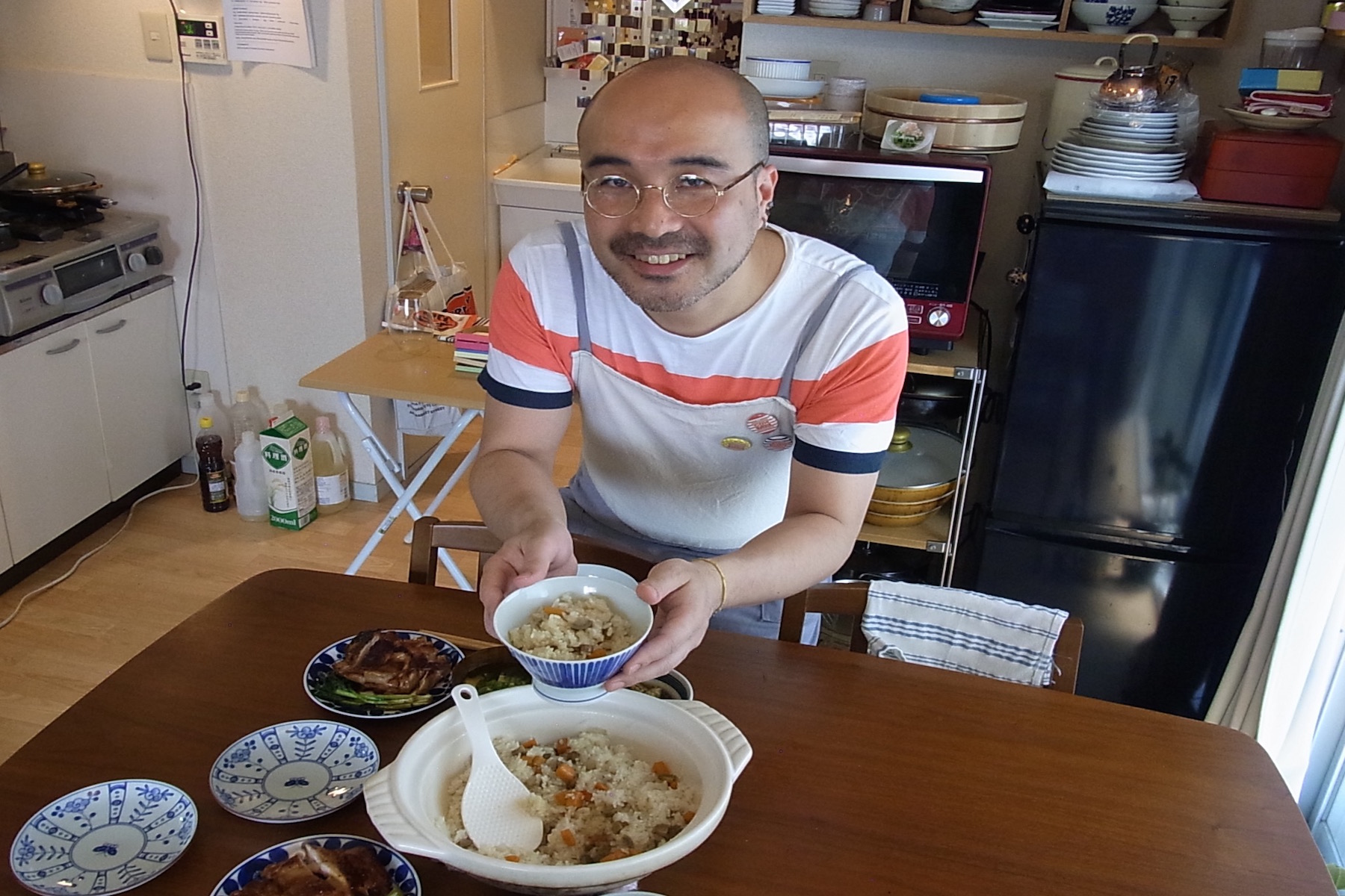 Cooking experience: (2-4 guests) After meeting Satoru at the JR Shinjuku station, you will walk together to his simple, cozy apartment in the heart of Shinjuku. Join Satoru in his small but efficient kitchen and learn how to cook 2-5 authentic Japanese dishes from scratch. You can expect your cooking class to take about an hour and a half before you sit down and share the meal you helped to prepare over engaging conversation with Satoru. Feel free to ask him about the ingredients that go into making the dish from savory dashi to sweet organic honey and he will give you tips and a story relating to his choice.