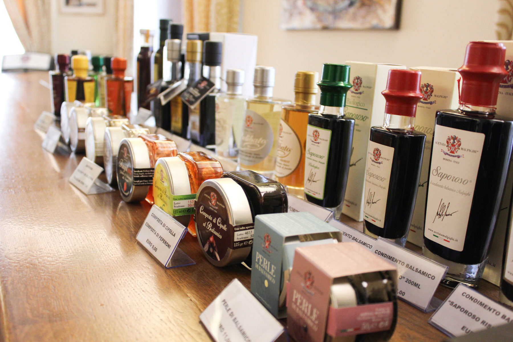 Meet your host Monica (or Nicole when Monica is away), a guide at the modern Malpighi acetaia (the home for the barrels in which the vinegar ages) for your private Modena balsamic vinegar tour and tasting. You will learn about why the region of Modena is world-renowned for its balsamic vinegar and how it is made. Discover how black Lambrusco grapes and white Trebbiano grapes are mixed, cooked and aged in barrels to make balsamic vinegar. You will visit two barrel rooms and a museum of vintage vinegar utensils. The proportion of black to white grape juice, the order of the wood that the vinegar is transferred in (a combination of cherry, juniper and oak which remains a secret!), and the passion of the family’s vinegar makers is what distinguishes the Malpighi family’s vinegar from others. After your tour of the barrel rooms you will head downstairs to enjoy a tasting of vinegars of various ages, ranging from 5-25 years, and see if you can determine the age of each vinegar based on its taste! You will also taste the Malpighi white balsamic vinegar and flavored vinegars. Leave with one bottle of Saporoso (100 ml) and one bottle of flavored balsamic vinegar.
