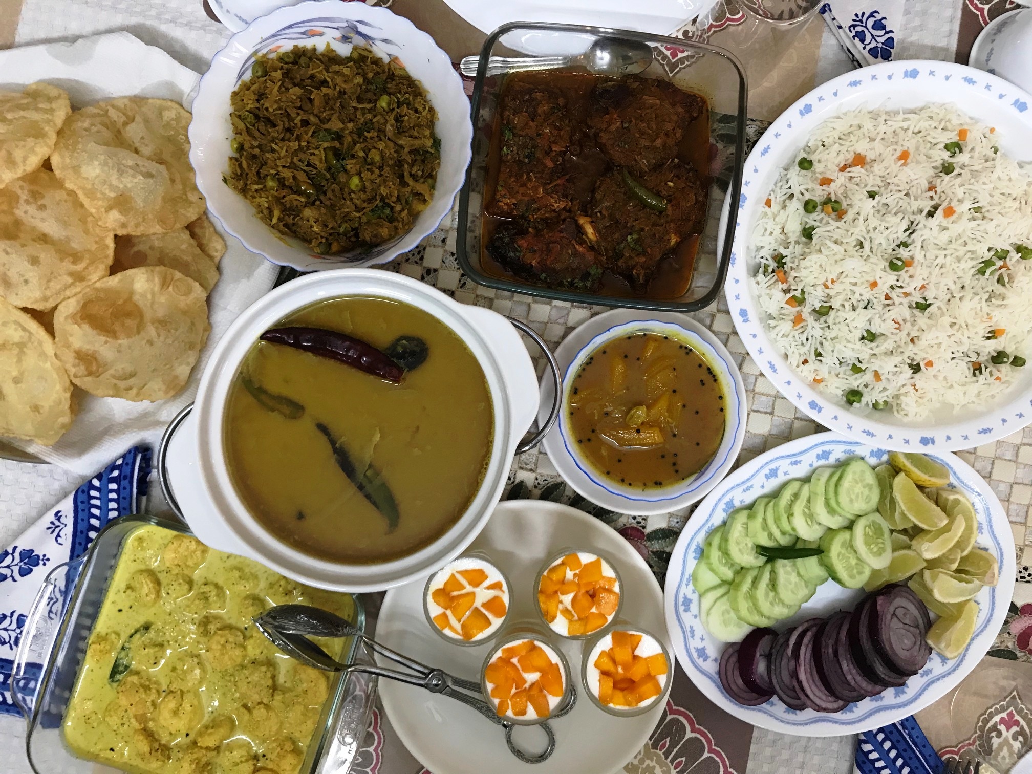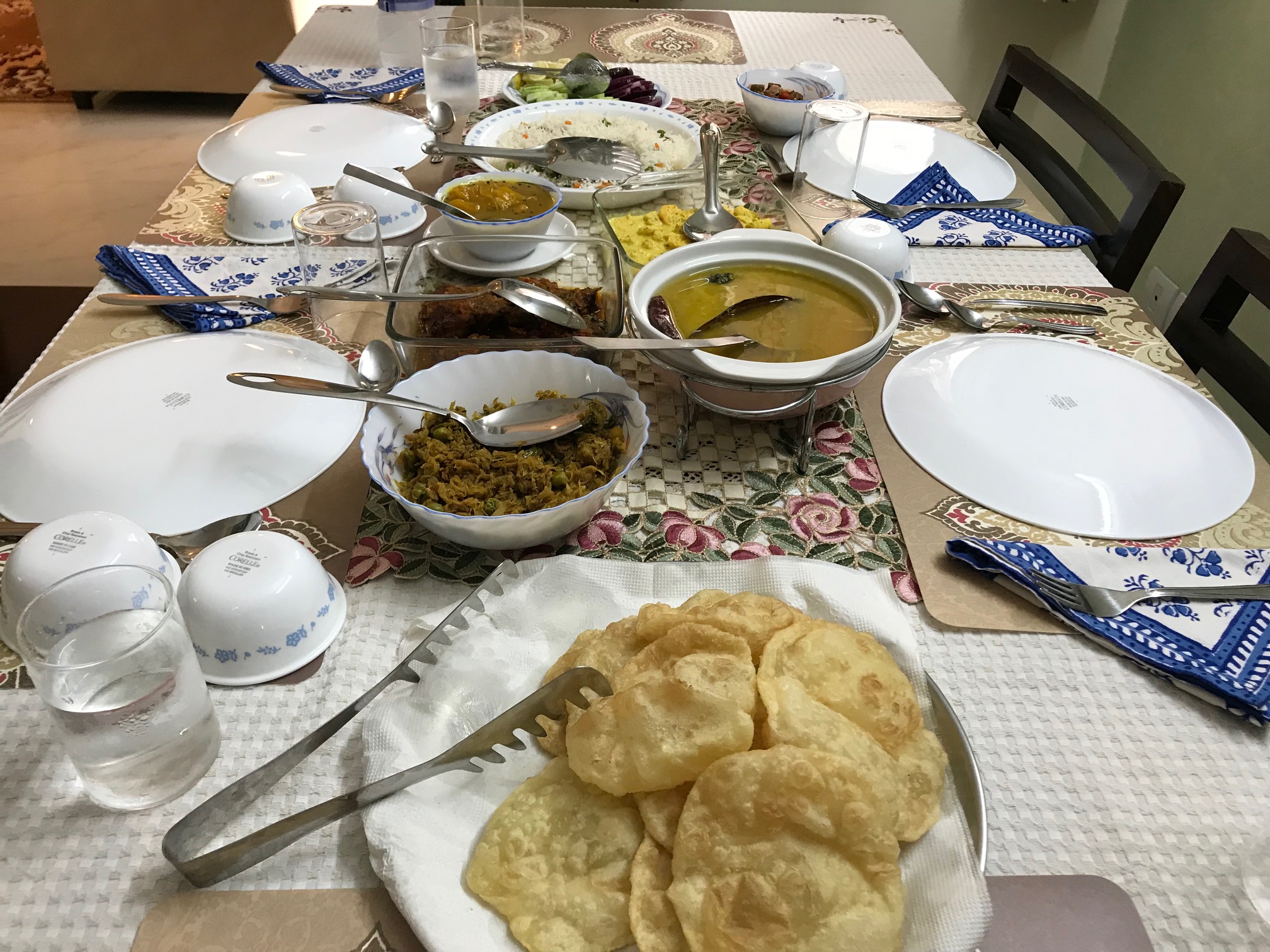 In-home meal: (1-4 guests) Zinnia and her family will welcome you to their apartment in New Town with a warm smile. While you sip on your welcome drink and some home made snacks, she will share all about her love for cooking. She cooks not only traditional Bengali food but can also fix up a few delectable North Indian dishes. The menu is thoughtfully chosen, according to your preferences, to feature 3-4 Bengali specialties and the distinctive use of mustard oil and mustard seed paste which is unique to Bengali cuisine. You will join Zinnia and her family (when at home) at their dining table for a home cooked Bengali meal that might include a few dishes such as shorshe maach (fish cooked in mustard sauce), chicken kosha (chicken curry) or aloo dum (potatoes cooked in tomato gravy), chorchori (mixed vegetables cooked in the authentic Bengali style), aloo posto (potatoes with poppy seeds) or begun bhaaja (eggplant/aubergine fry) and cholar dal (lentils) served with rice or lucchi (flat white bread deep fried) and tomato and dates chutney or raw mango chutney. Your meal will end with some paayesh (rice pudding) or if the season permits, maybe something sweet made with mangoes!