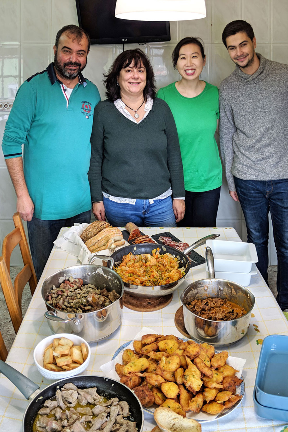I felt like I was part of a big family as soon as I was greeted by Paulo and Susanah. Upon entering the kitchen, I could already see how much food they had prepare for me and my partner. We finished cooking the cod cakes and pan-fried the fresh clams. Paulo, who knew a ton about wines - apparently, he used to work for a wine company, took us to his wine cellar and talked about what we would be drinking that day. We easily had a 5-course meal with multiple dishes in each course. Susanah and Paulo knew my partner and I couldn't eat too much dairy, so instead of Susanah's famous rice pudding, she made us an apple tart instead, which was super thoughtful and sweet. It seemed like we talked for hours at the dinner table and was joined by Paulo and Susanah's son as well. Topics like football, food, the Spanish (haha), the history of Portugal, travel -- really anything you would talk about with your family, you could do here. It was really that kind of "European" eat, drink and laugh atmosphere that you imagine. These experiences are so memorable for me and I really thank my hosts for such a wonderful and delicious experience.- Christina November 15, 2018