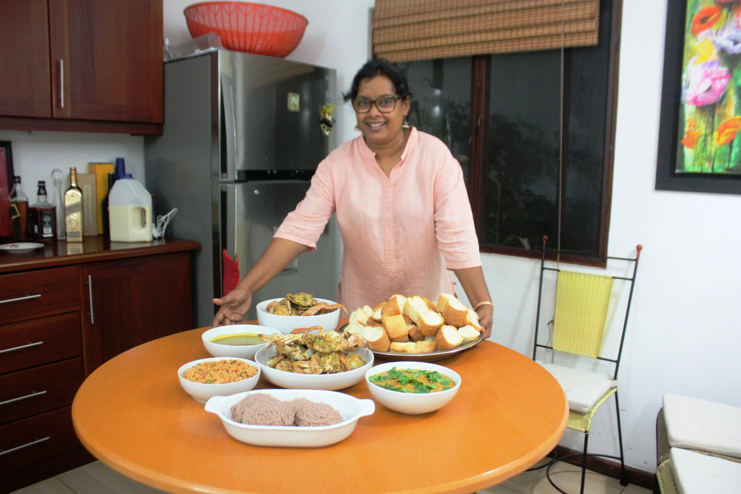 Nanditha lives with her husband, daughter and two dogs in a beautiful home in central Colombo 5. Nanditha is very creative - visible when you visit her home - tastefully decorated with family photos, art, and paintings, some of which are hers! Warm with welcoming smiles, Nanditha and her family are hospitable hosts. Nanditha’s friends and family have often appreciated her cooking which led her to share her passion with those who want to learn more about Sri Lankan cuisine.