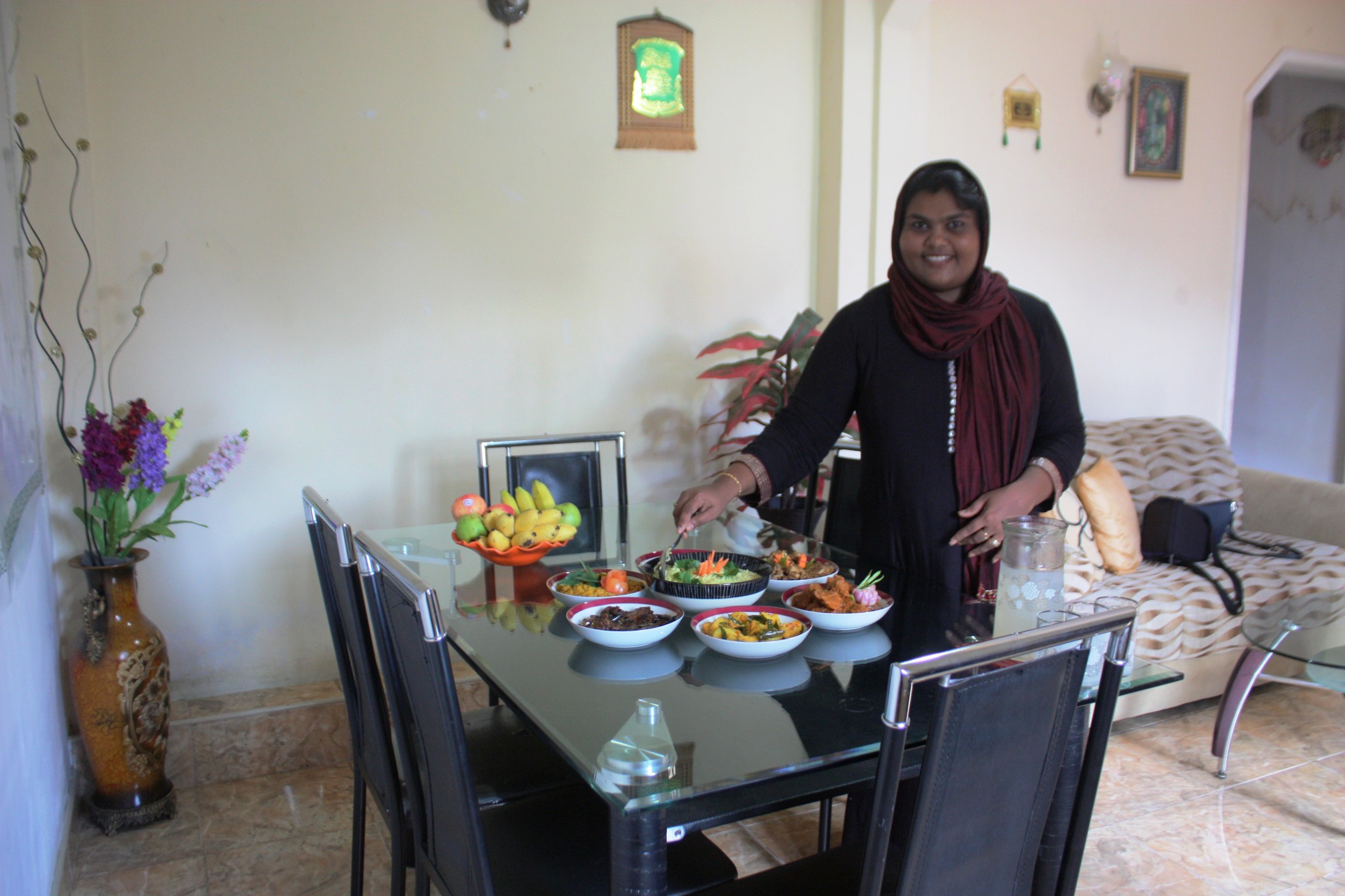 Shifu lives in Wattala, an hour's drive from Colombo, and is a passionate cook and decorator in addition to being a homemaker and mother. She learned to cook from her mother when she was a teenager and has not stopped cooking since, experimenting with unique cooking techniques whenever she can. Being half Malay and half Moore, and having friends from various communities, she has learned a variety of dishes from recipes she has gleaned from grandmothers, aunts, neighbors and friends. She cooks authentic Sri Lankan food, both Sinhalese and Muslim cuisines. She is also into creating fusion cuisine!