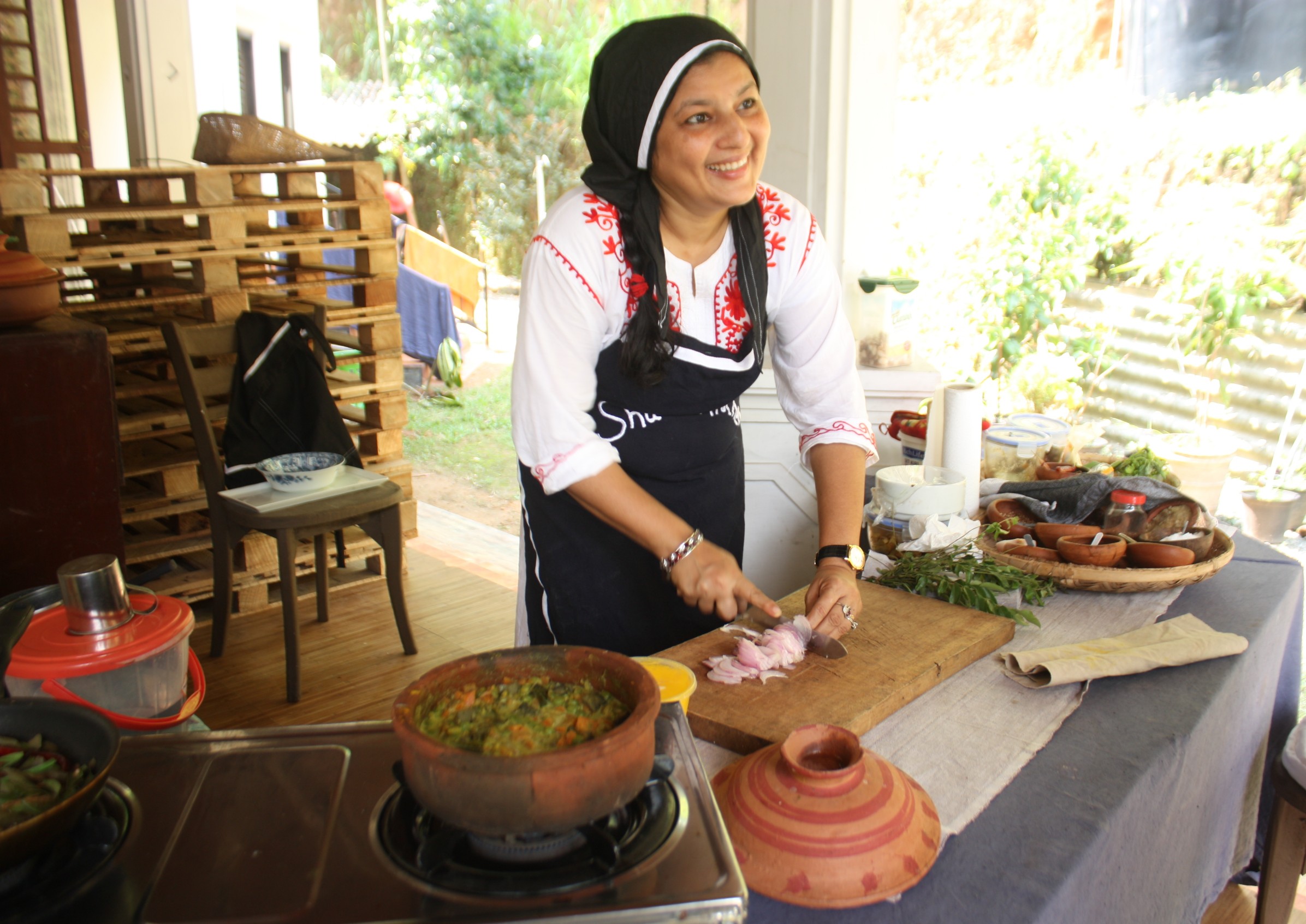 Shahira is the quintessential Sri Lankan mother of four beautiful children - an amazing cook, a skilled storyteller and a loving wife. Her family are fourth generation residents of Galle, and their ancestors are of Moorish and Persian descent having first arrived on the shores of Galle in the 16th century. They are one of the earliest traders of spice and colored stones to settle in the Fort. Shahira enjoys meeting people and it gives her immense joy to share her cooking with friends and family. She is constantly re-inventing herself in the kitchen and rarely creates the same dish again! Over the years she has become an expert in the kitchen and does not necessarily follow a recipe, but relies more on the senses - taste, smell and the look of food to know when it's cooked. Shahira is also an avid traveler and loves to re-create dishes that she tastes in restaurants on her travels!