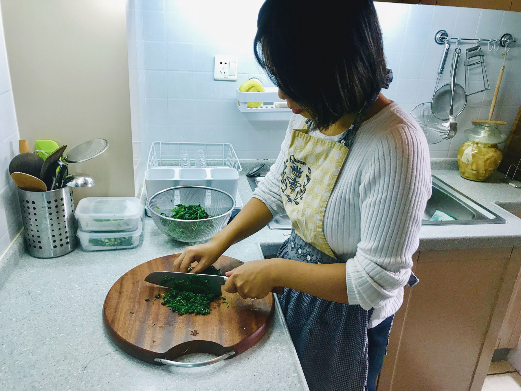 Vivie is originally from Guizhou, a province in the middle of China renowned for its spicy food and culinary diversity. It is also the birth place of China’s beloved chili sauce ‘Lao Gan Ma’ and Vivie now makes and sells chili sauce of her own! Vivie was raised as a child mostly by her grandmother who taught her to create the perfect synthesis of the different spices and flavors of her hometown. Every day after school, Vivie and her grandmother got together and cooked dinner for their family. Her family seldom ate at restaurants because Vivie and her grandmother created and served such delightful dishes at home. Vivie moved to Shanghai when she was eighteen to attend university and has been here for the past decade. Vivie lives with her husband Chris who moved to Shanghai from America along with their two cats Frank and Tim in their comfortable apartment near the famous Xin Hua road.