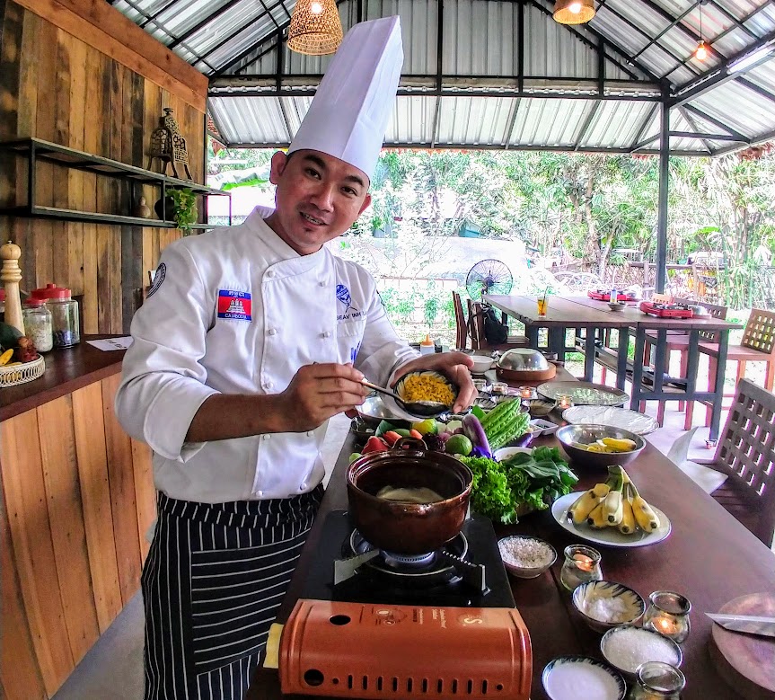 Please note that since the experience takes place at a lodge restaurant, there will be other guests present in the restaurant during your experience. However, your Traveling Spoon cooking class and meal will be private and other guests will not join you. Also, Seav will not join you at the table for your meal.